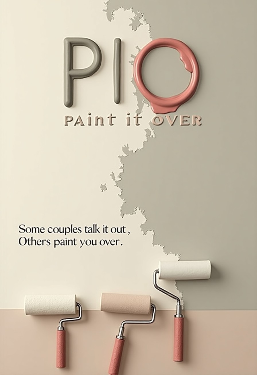 A domestic farce where repression comes in one-gallon cans. Dean can’t stop repainting the house to cover his emotions, while Marco, bored and restless, drifts into intimacy with an AI. Each episode pivots on a new swatch—every color a metaphor, every coat an avoidance. Enter PIO™, the sinisterly cheerful paint company that turns denial into a product line. Sharp, funny, and unsettling, it’s a portrait of midlife love, consumerism, and the absurd ways people cover the cracks instead of facing them.