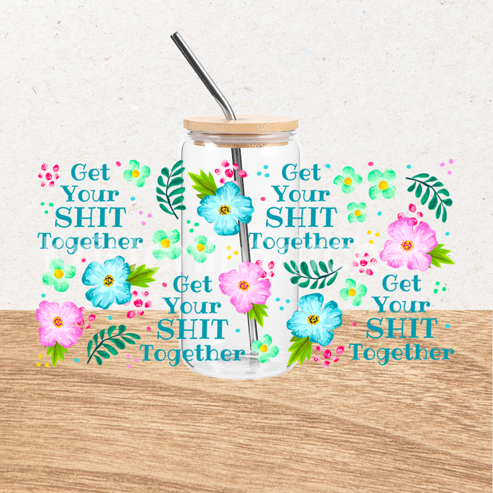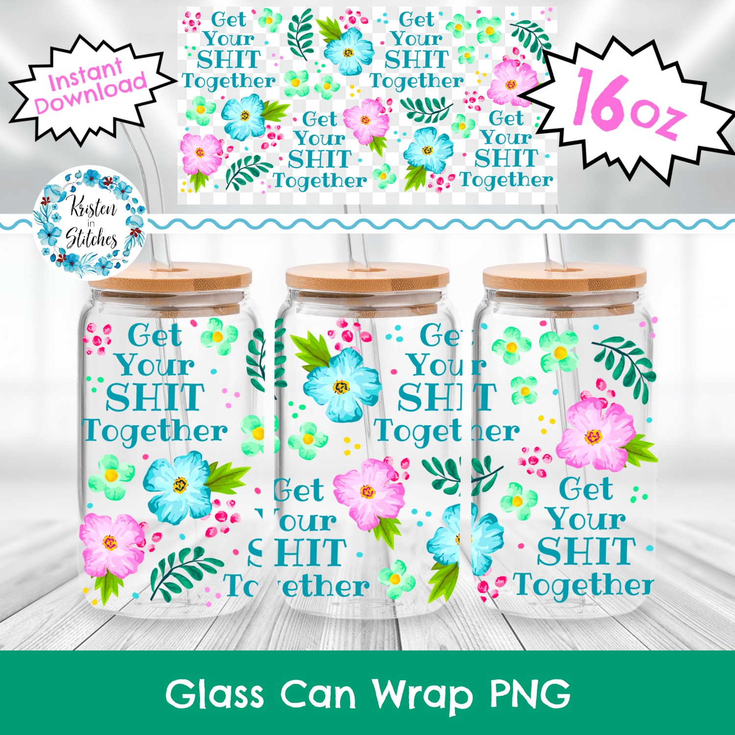 Get Your Shit Together 16 oz Glass Can Wrap Transparent PNG, Pretty Profanities