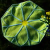The petals grow out from the center allowing you to become familiar with the modified in-the-round technique before any cabling begins.