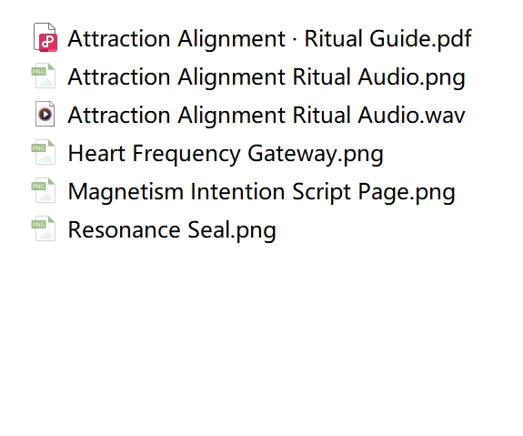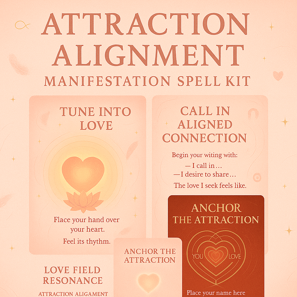 Attraction Alignment is a digital ritual kit designed to gently tune your heart field toward resonance, receptivity, and soul-aligned connection.