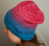 This hat is knit in the round from the brim up and incorporates a stranded colorwork pattern (charted only) to jazz up the transition from one color to the other. The amount of slouch in the hat can be easily adjusted by changing the number of plain rounds after the stranded pattern is complete and before the crown decreases are started. The pattern also includes some notes on color dominance to help make your stranded work really pop.