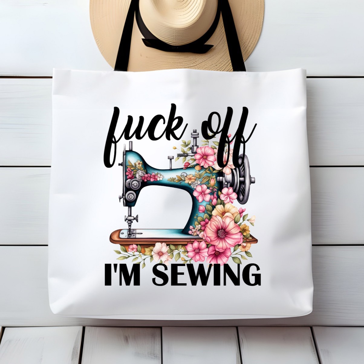 Fuck Off I'm Sewing Sarcastic Funny Large Tote Bag