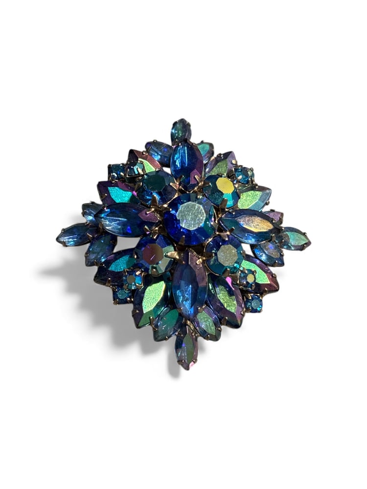 - Stones: Iridescent faceted crystals & cabochon-style accent