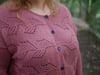 Ce modèle a une construction particulière. On tricote du dos vers le devant grâce à un montage provisoire. La dentelle se dessine alors le long du corps, serpentant jusqu’aux devants.