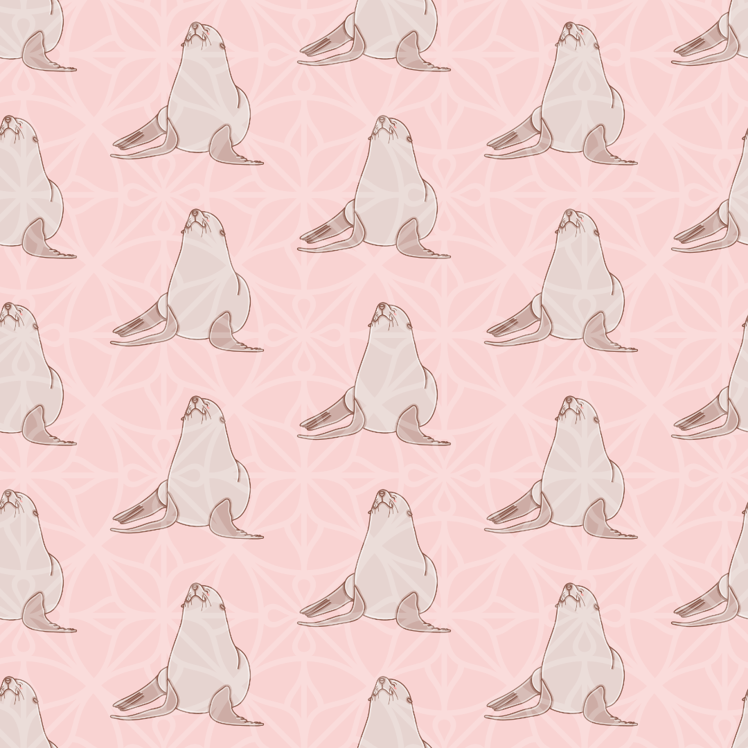 Happy sea lion pattern illustration. Kawaii pinniped seamless vector background.