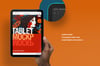 Photorealistic iPad Mini tablet mockup held by a hand, featuring a single isolated view, changeable tablet color and an editable Smart-Object screen.