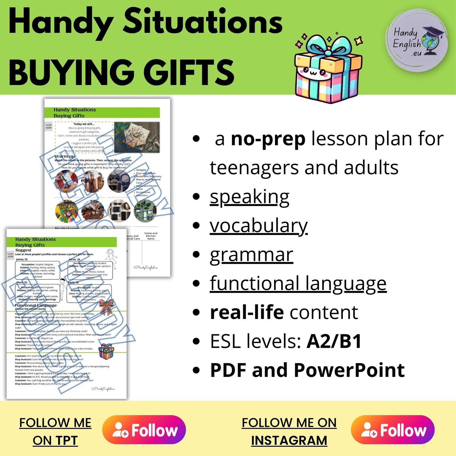 Buying Gifts Survival English no-prep Christmas lesson plan ELA ELL ESL