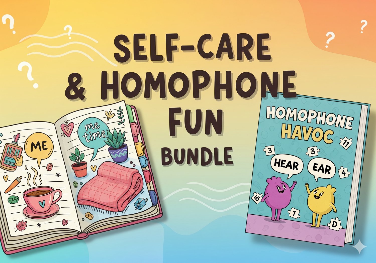 A perfect combination for personal growth and educational fun, this bundle includes a 30-day self-care journal and a homophones workbook. The journal, titled