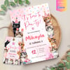Girl Pink Cats Meow Pawty Kids Canva Editable 3rd Birthday It's Time to Pawty Party Invitation Canva Template