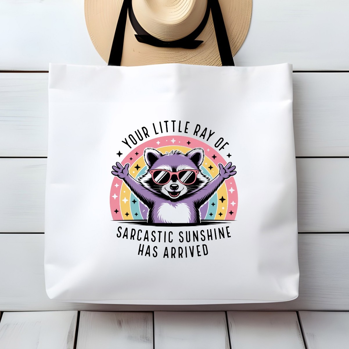 Your Little Ray Of Sarcastic Sunshine Has Arrived Raccoon Sarcastic Funny Large Tote Bag
