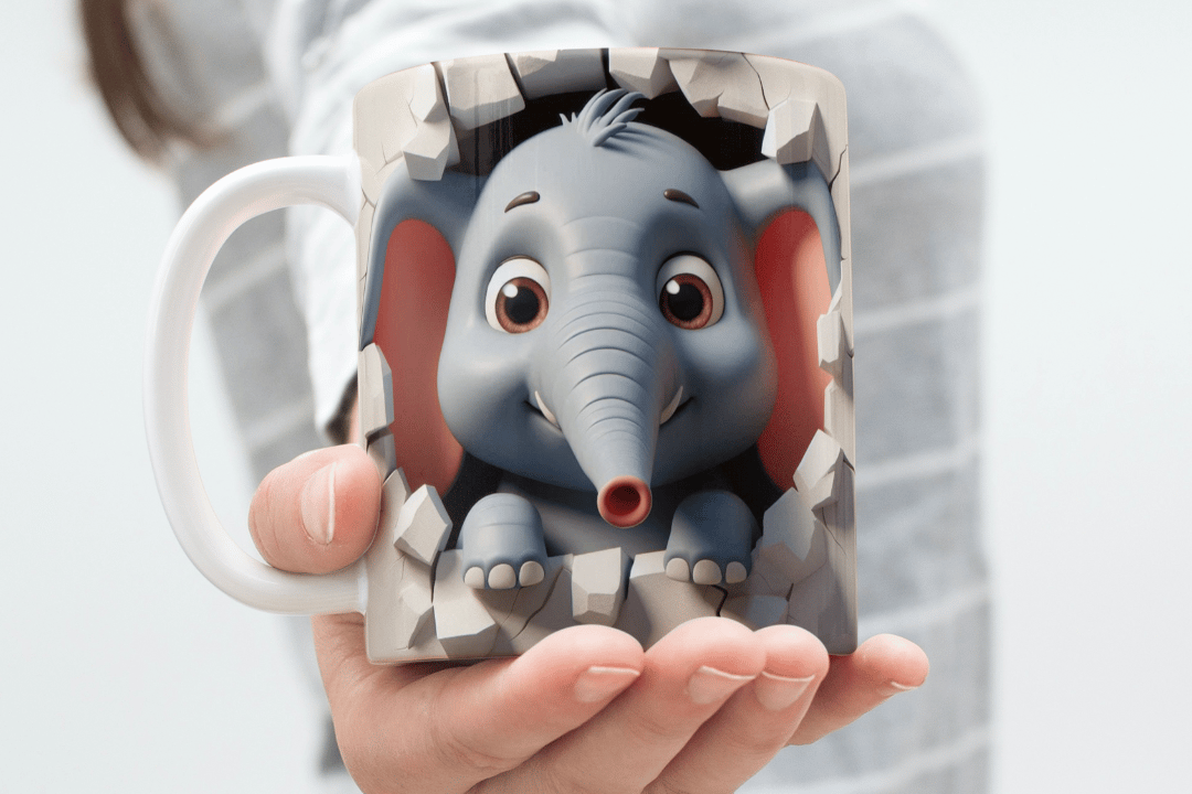 Add some playful charm to your mug creations with this adorable 3D elephant cartoon. Perfect for crafting unique, fun mugs that everyone will adore!