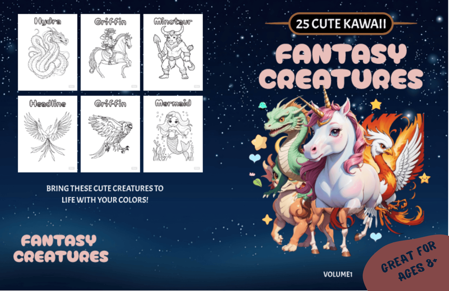 Welcome to the world of magic and relaxation with “Cute Fantasy Creatures Coloring Book”!
