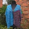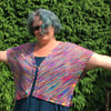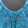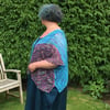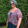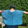 A light summer throw-over in four very generous sizes to be worked in lace-weight yarn. Worked in one piece from the bottom centre back with short row corners, there are only two small side seams required to finish the garment.