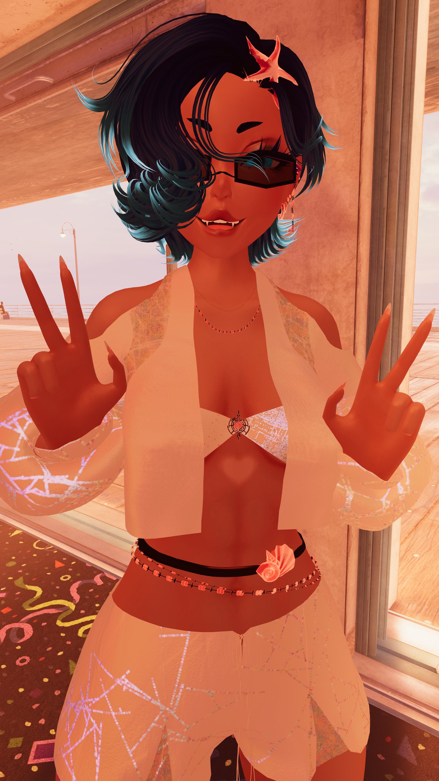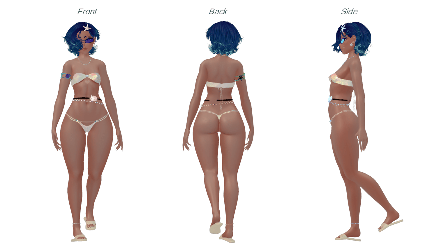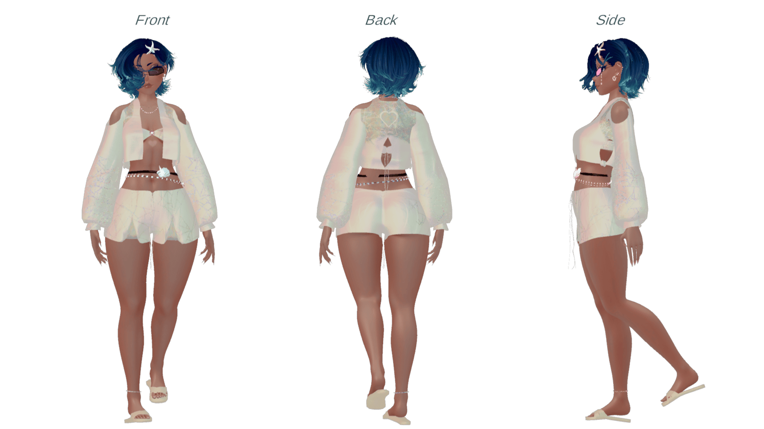 This asset was created for ConVRse's 2025 Charity Ball, where we raised money for the TreVR Project. It being summer inspired a bathing suit look with a nice sporty coverup to be able to enjoy the sun without feeling too exposed. The design is representative of sand being melted down, but in return changing into beautiful glass that reflects the rainbow, showing that even when the world is against us, we'll continue to glimmer even on the hottest days. Recently after I lost my job (unrelated) and want to start creating for the community to enjoy, but also to build up my skillsets and support myself. So by buying this asset, you're supporting me. And for that, I'll forever be grateful. Have a glowing day!
