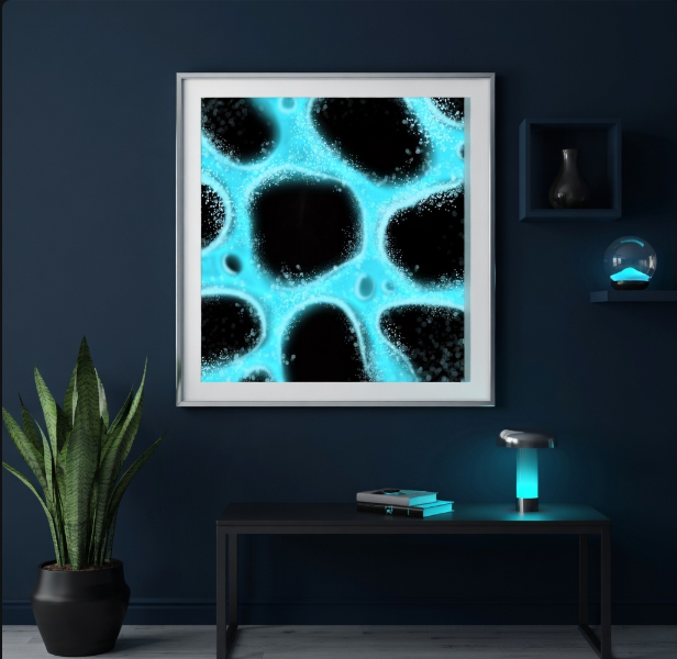 “Rippleform” captures a moment where light behaves like water, flowing and folding into soft, cellular waves. The glowing shapes ripple outward as if responding to an unseen current, blurring the line between surface and depth. Each form feels suspended—neither solid nor empty—suggesting motion, breath, and quiet energy beneath stillness. The piece invites the viewer to linger, as though watching ripples expand across water, endlessly reshaping themselves in gentle, luminous motion.