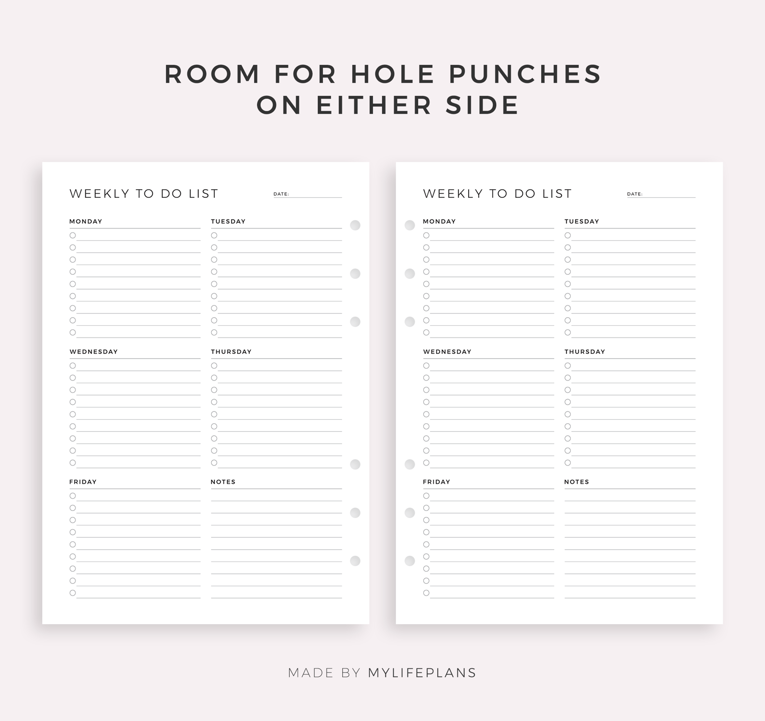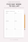 Five Day Week To Do List Planner, Printable & Fillable, A4/Letter Size