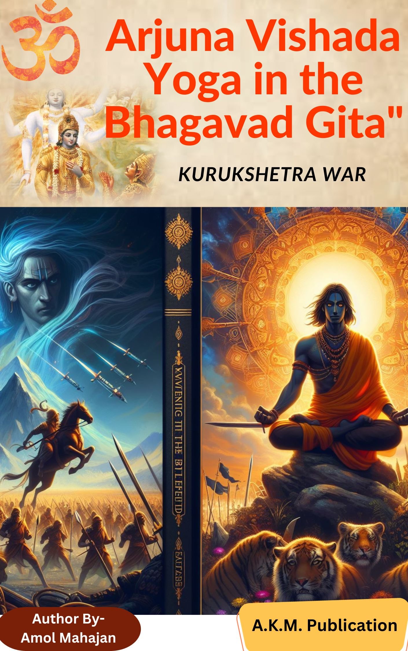"Journey through the sacred verses of the Bhagavad Gita's Arjuna Vishada Yoga, as this insightful book navigates the battlefield of Kurukshetra, unraveling the profound wisdom of duty, spirituality, and self-realization. Delve into the timeless dialogue between Lord Krishna and Arjuna, exploring the transformative journey from confusion to enlightenment in the face of moral dilemmas and existential questions. 'Awakening on the Battlefield' is a profound exploration of ancient teachings that resonate with universal truths, offering guidance for navigating the challenges of life and finding inner peace."