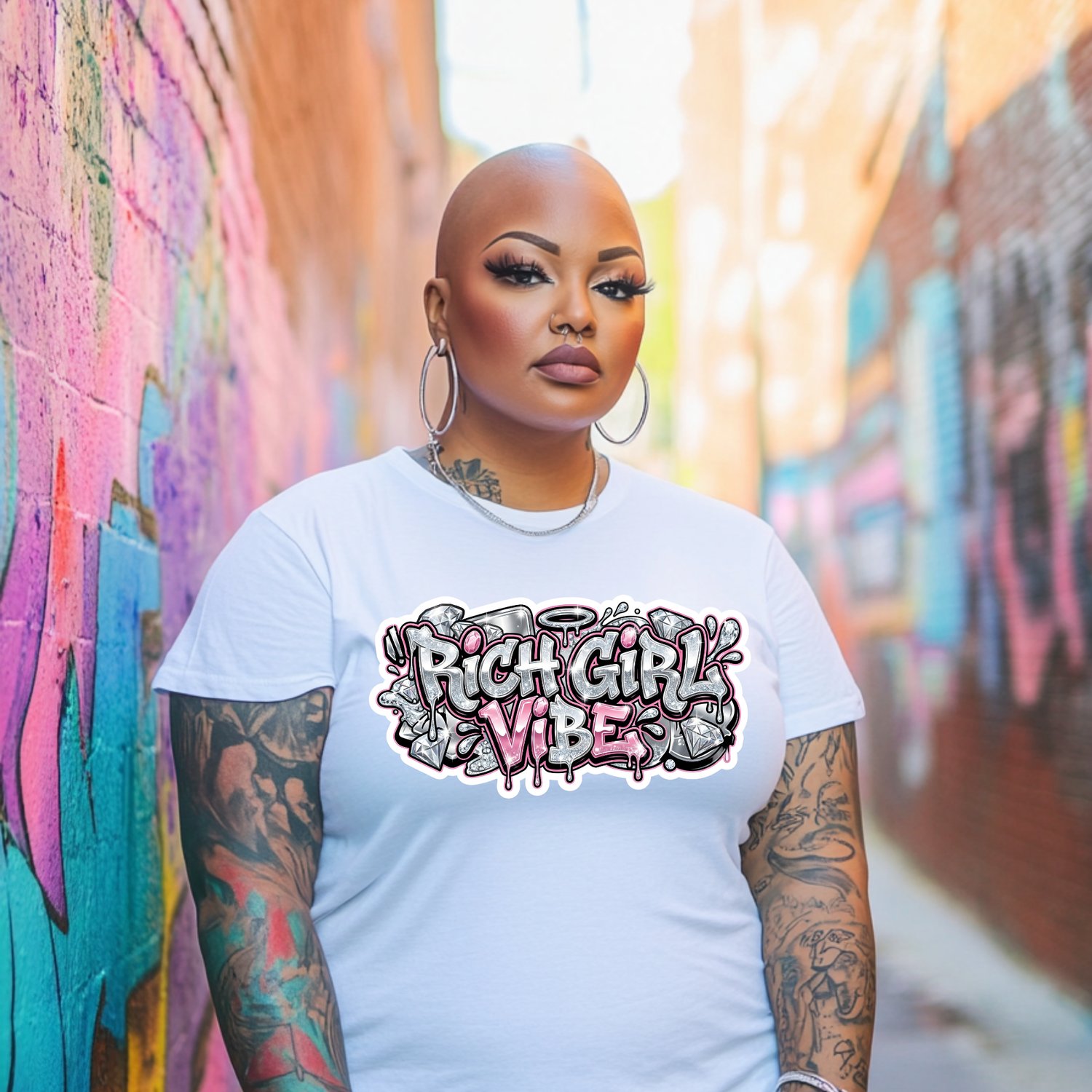 Rich Girl Vibe PNG Silver Chrome Glam Typography Shirt Design Instant Download