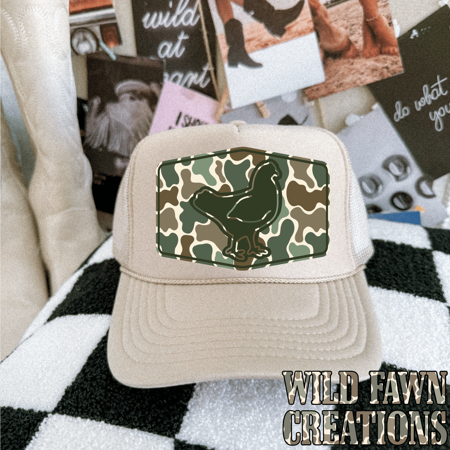 Camo Hat Patch | Chicken Sublimation & DTF Design | Western Ranch Digital PNG”