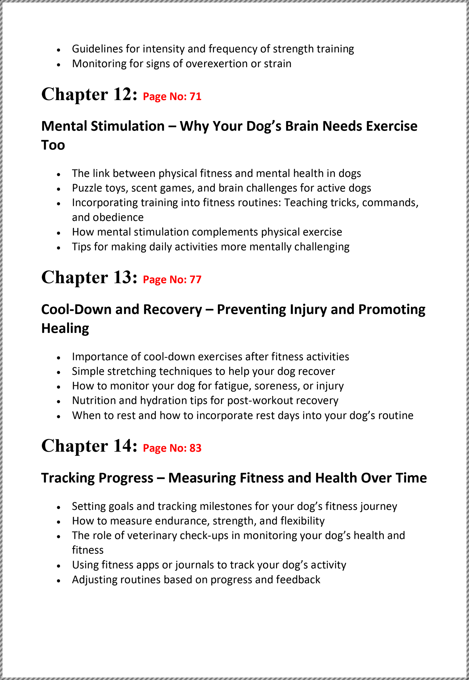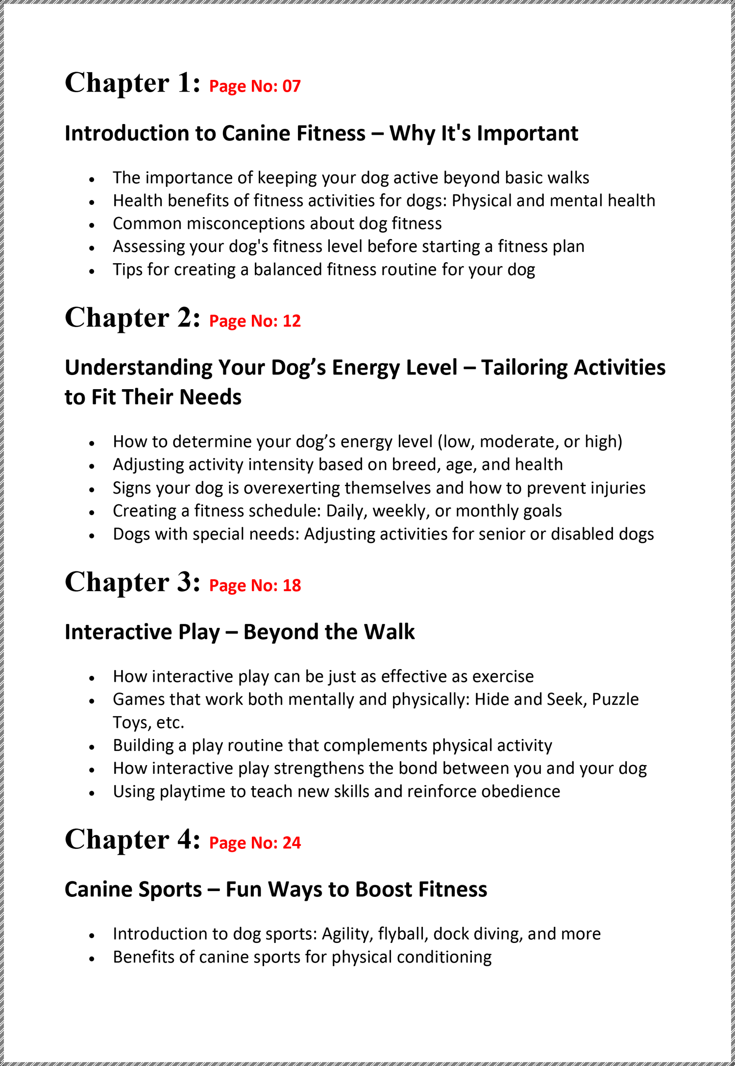 This eBook offers 15 chapters and 93 pages of expert advice, providing step-by-step guidance on keeping your dog fit, healthy, and active beyond walks—ensuring a strong, fun, and lifelong bond with your canine companion.