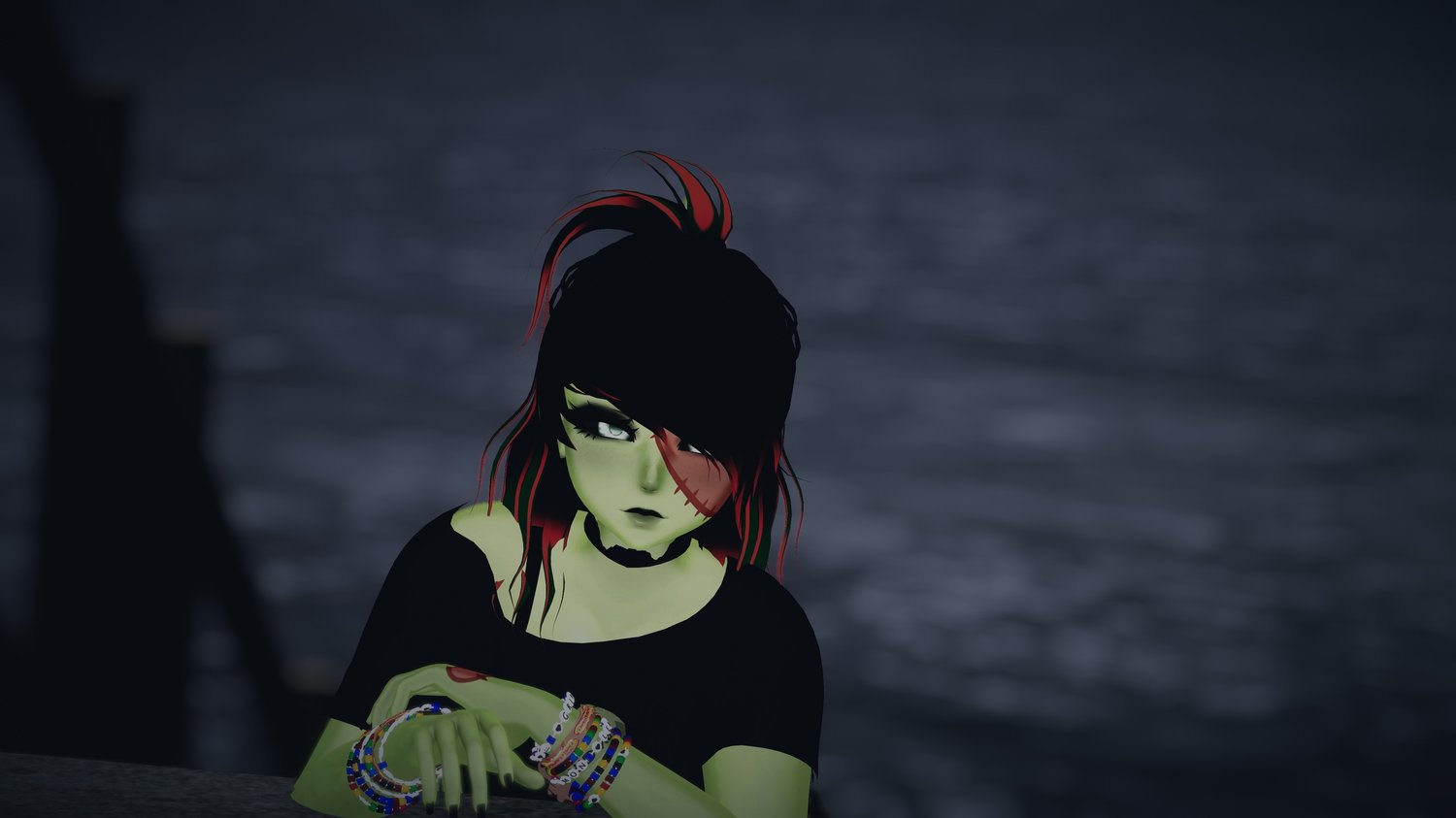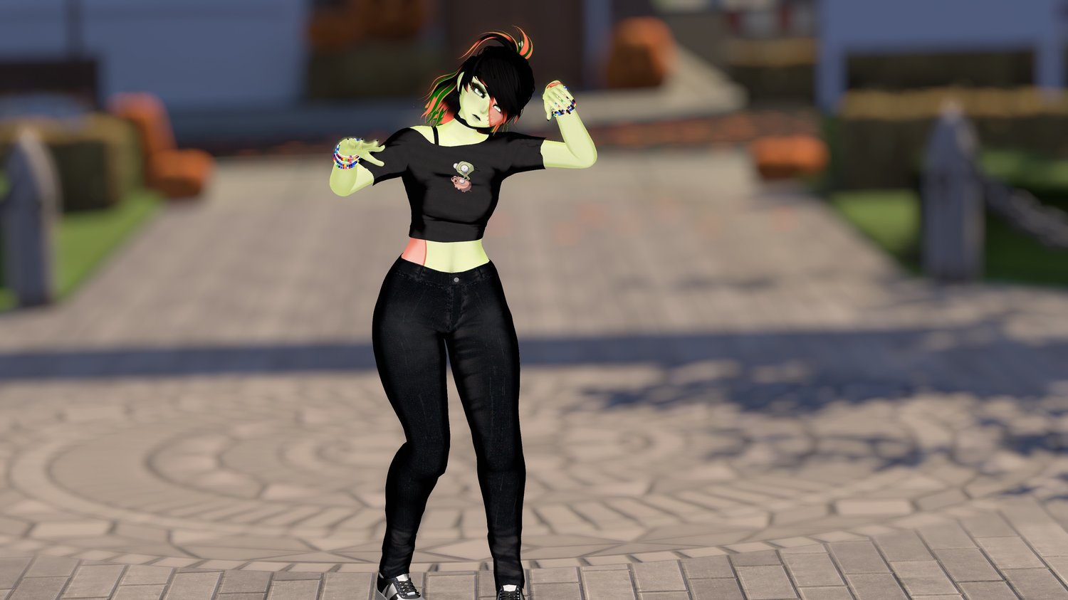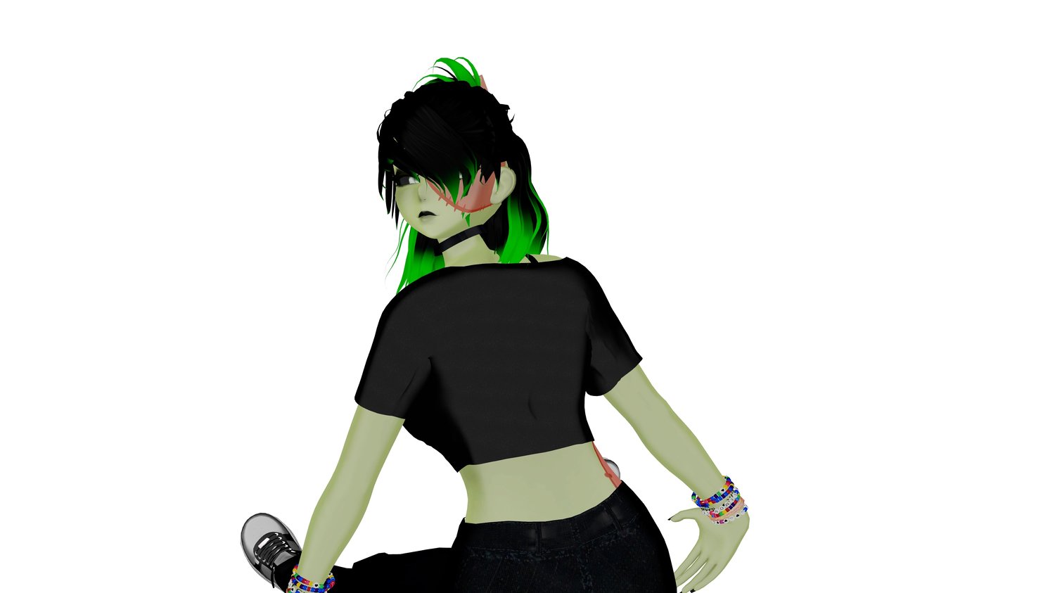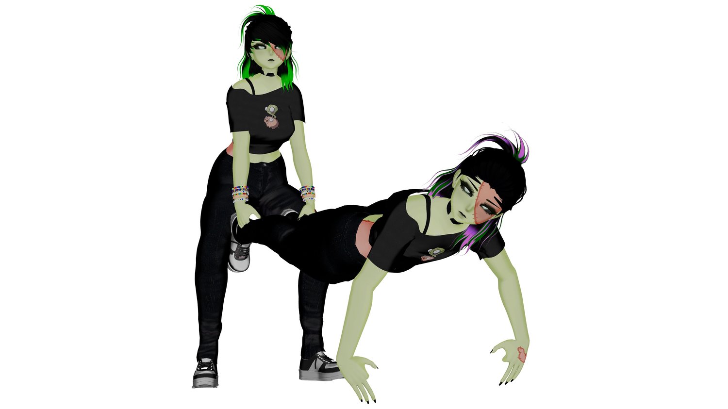 This cute zombie just wandered by with their only possessions: Shirt, pants, shoes, bracelets, and claw hairclip. Toggles/radials include: chest size, hair hue choices, bangs & bracelets on/off. They're kinda a 'newborn' zombie, and need your help to find their way in the world. I adopted one....and happy I did! Why don't you?
