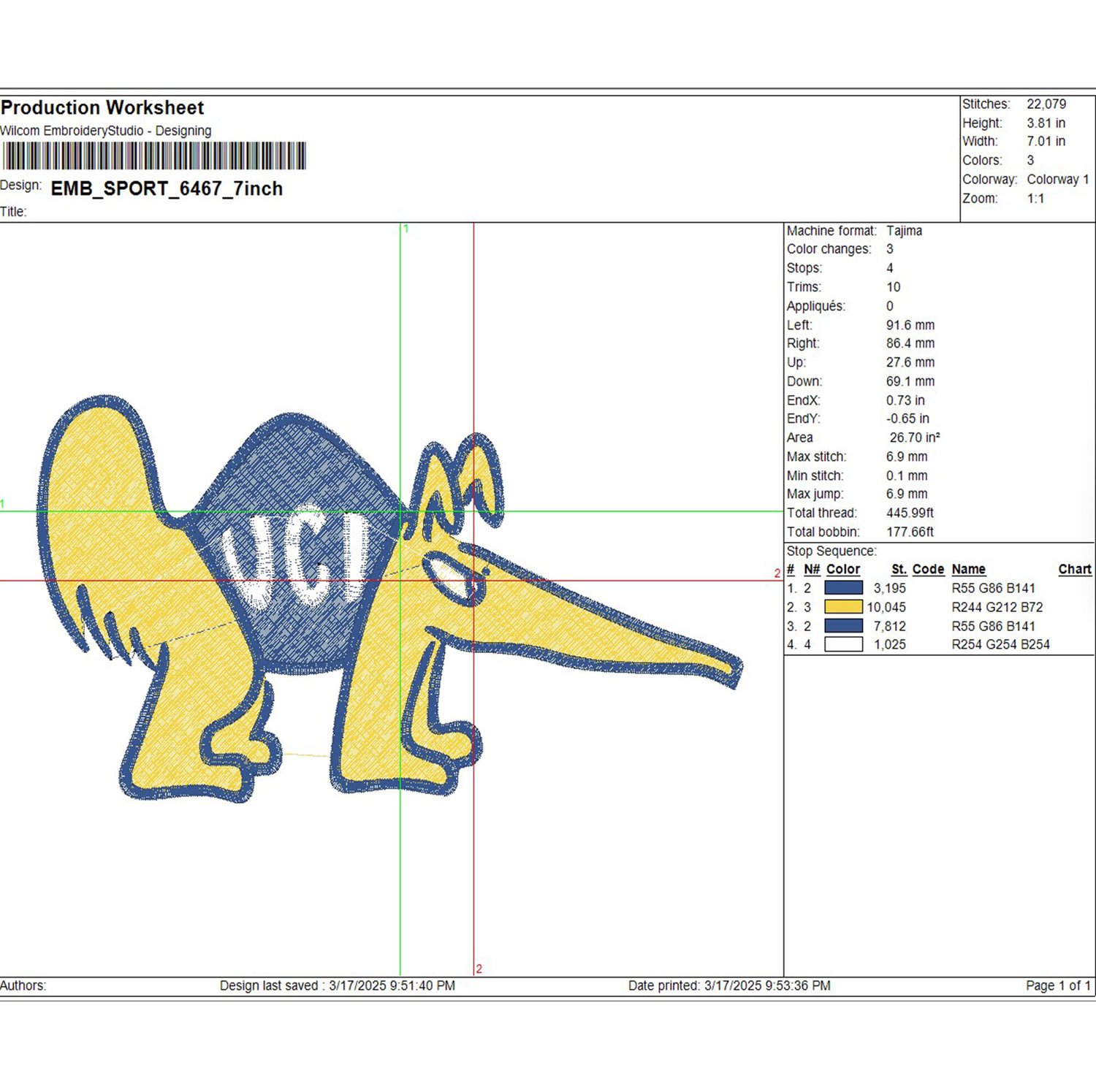 NCAA UC Irvine Anteaters Team Logo Embroidery Files, NCAA UC Irvine Anteaters Football Team Embroidery, NCAA Teams, Game Days, Machine embroidery designs, Digital Download