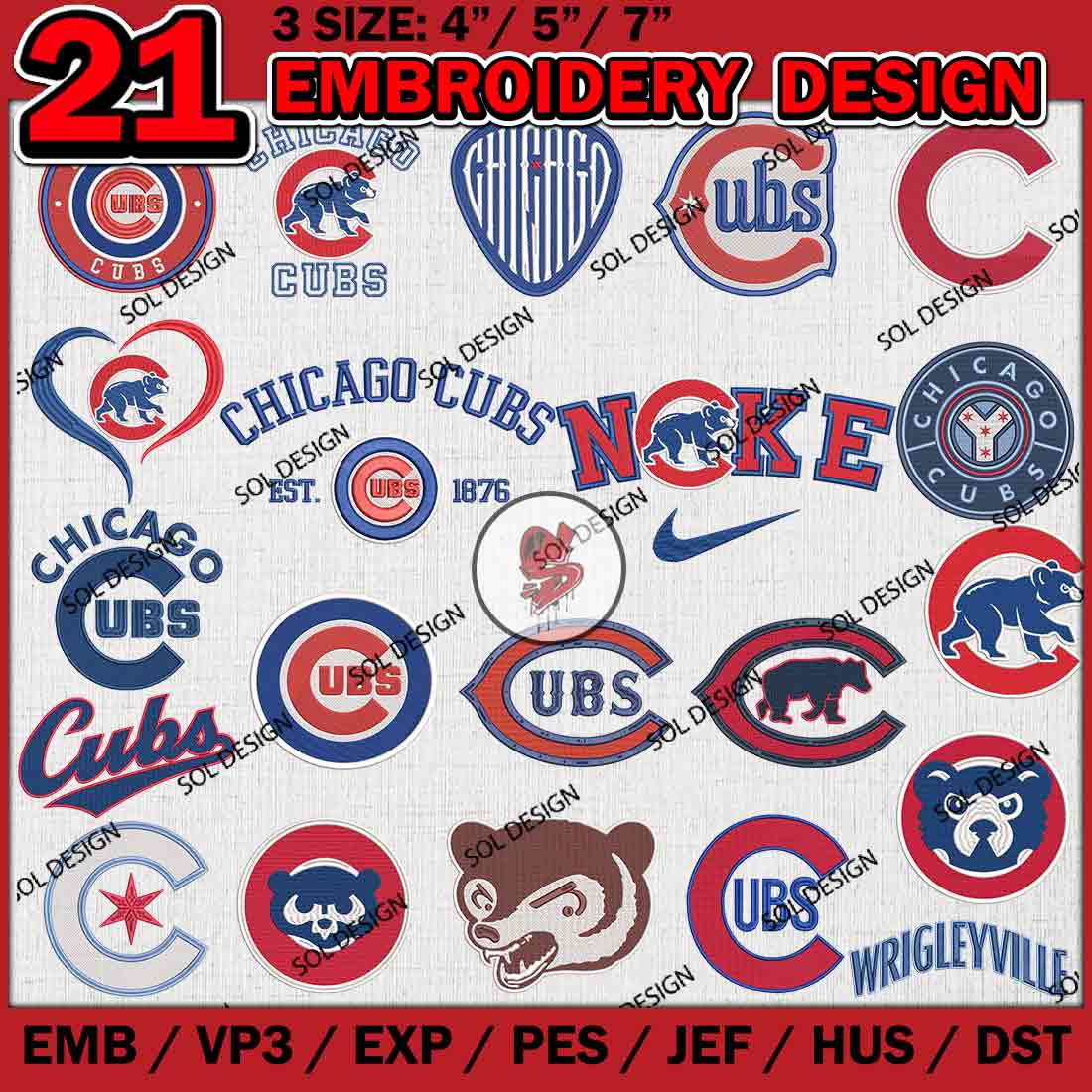 21 Chicago Cubs MLB Team Bundle Embroidery Designs, MLB Chicago Cubs Embroidery Designs, MLB Cubs Machine embroidery Designs Bundle, Baseball Team Bundle, Digital Download