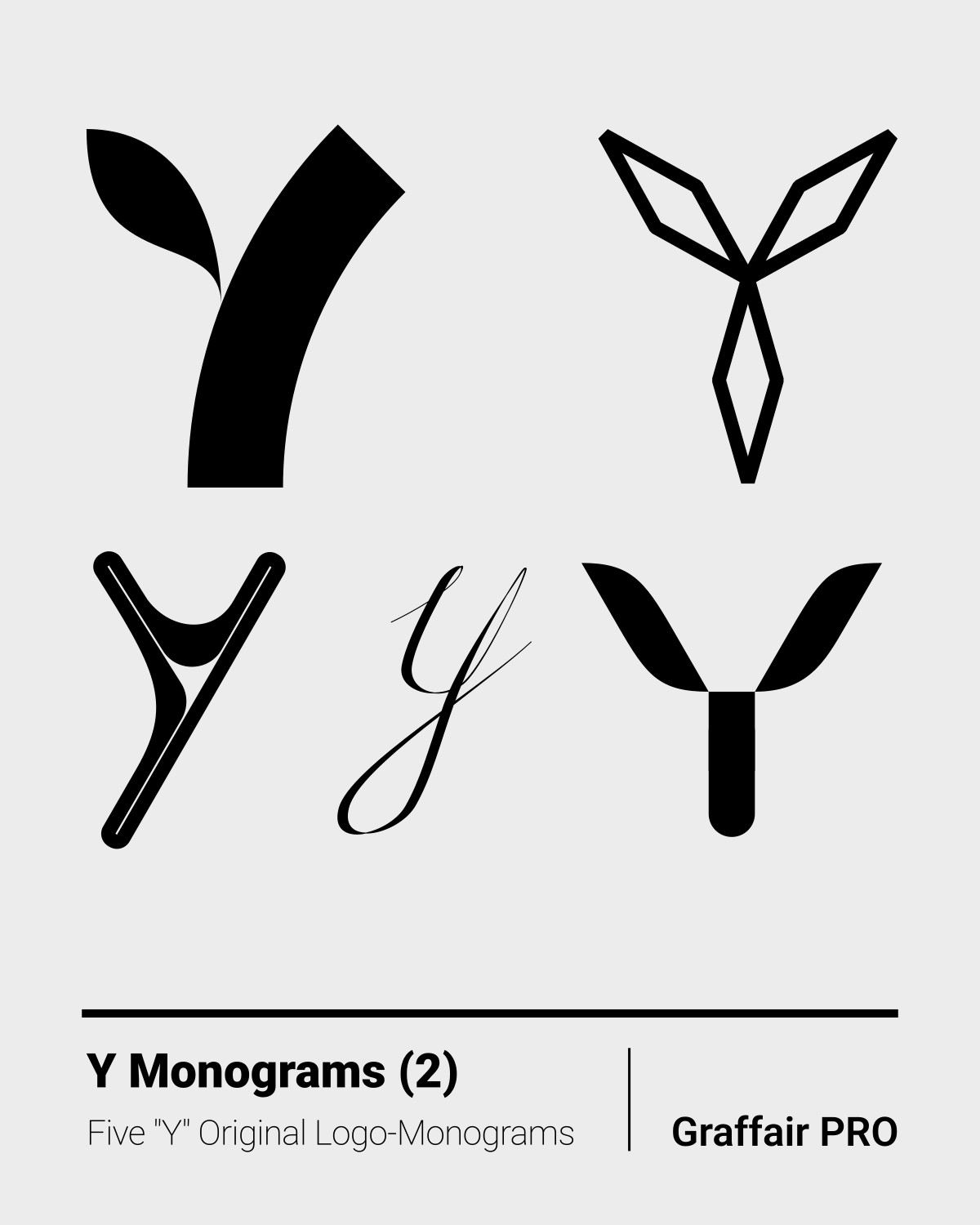 Y Monograms (2): The 2nd set of five original "Y" logo-monograms, included in the "1050 SVG Monograms" super bundle, amongst others, which also features an Index catalog.
