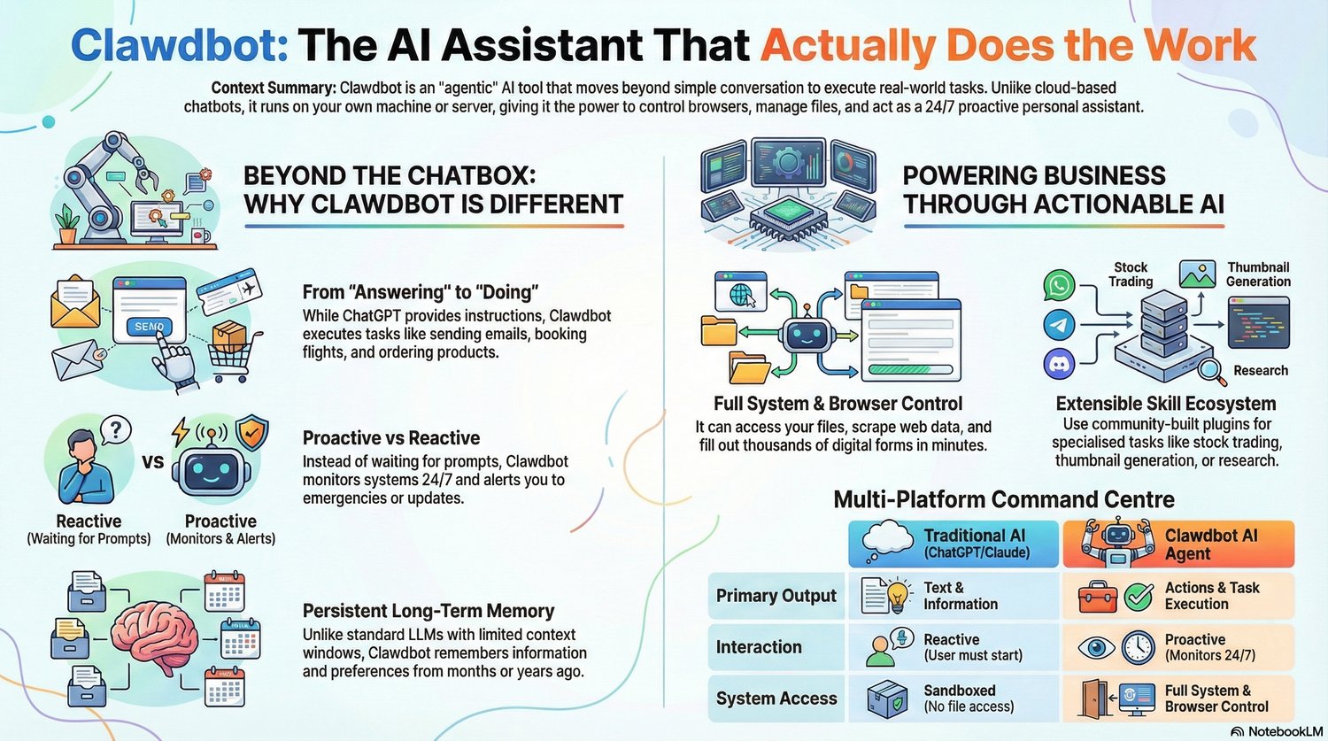 - How Clawdbot moves from “responding” to doing real work