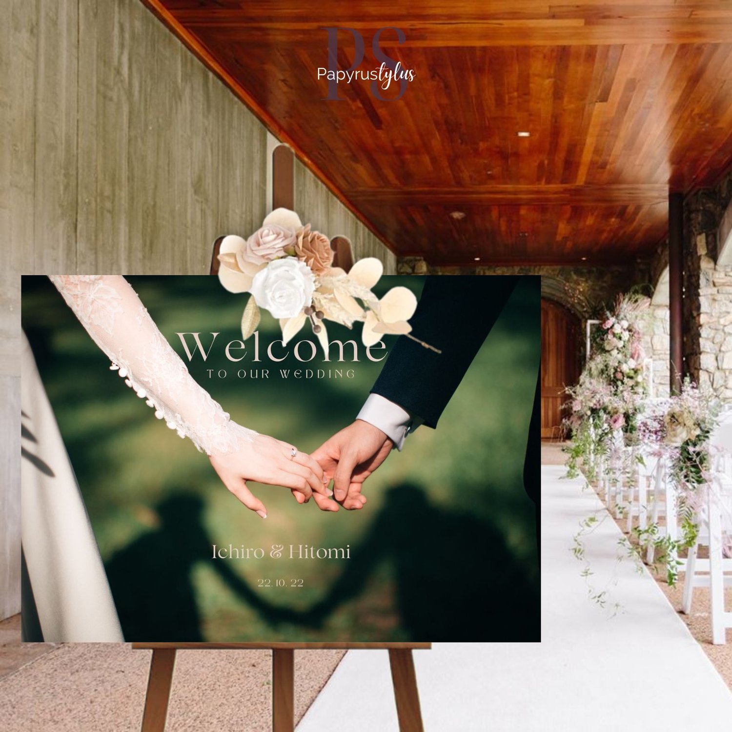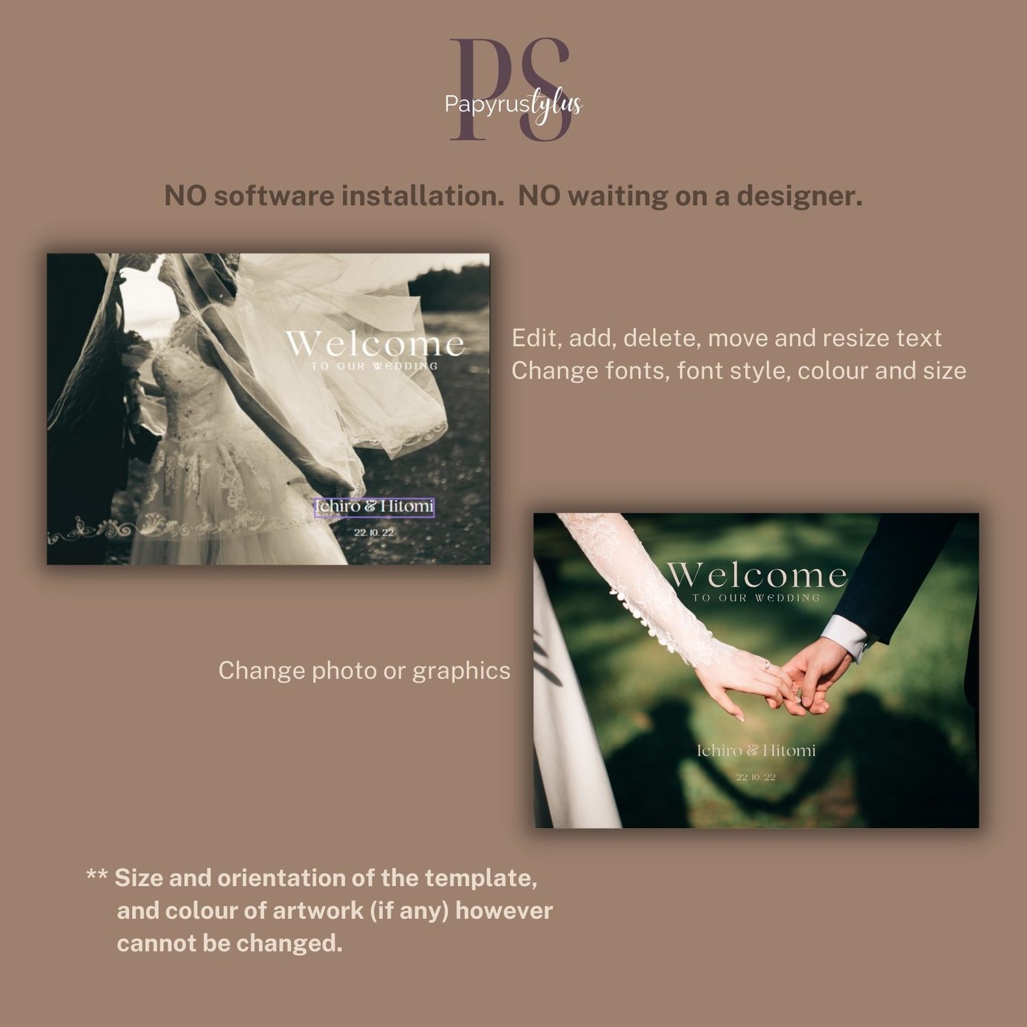 Use your favourite photo as the background of the wedding welcome sign, let your guests immediately feel your happiness on arrival! All texts are adjustable.