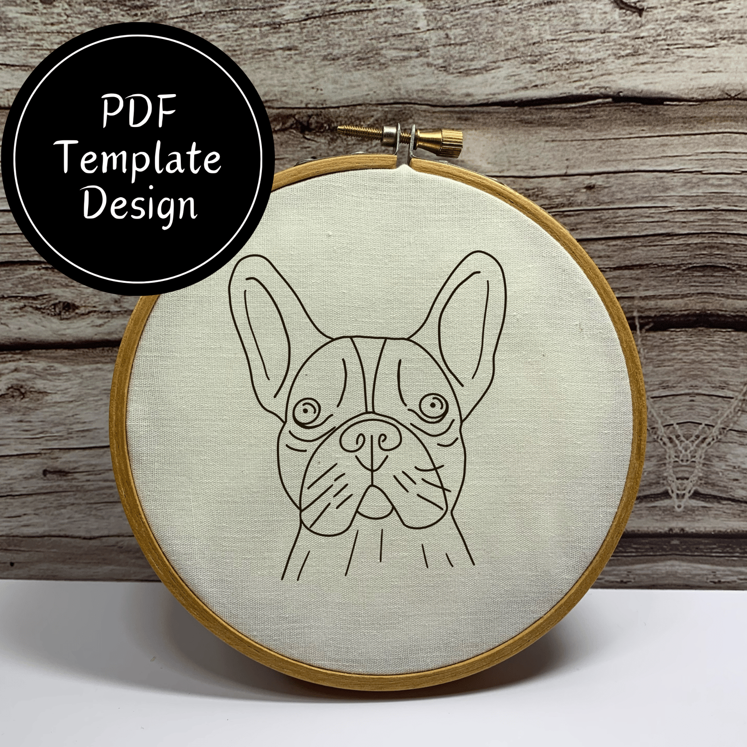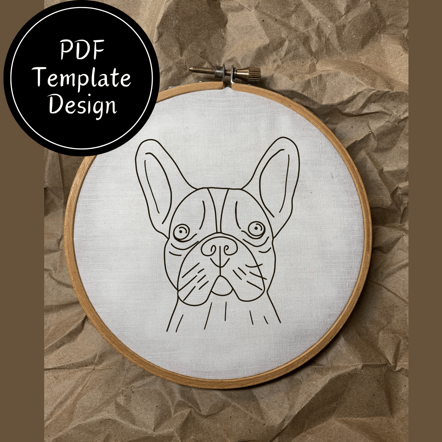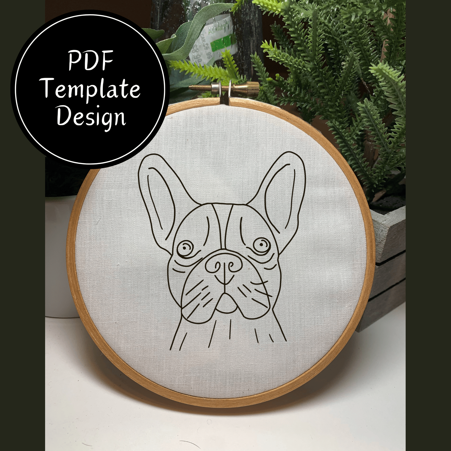 This Frenchie hand embroidery pattern is beginner-friendly, choose the stitches you like making it as easy or difficult as you wish. You can use this printable embroidery pattern to give as a gift, decorate your home, tote bags, etc.