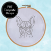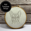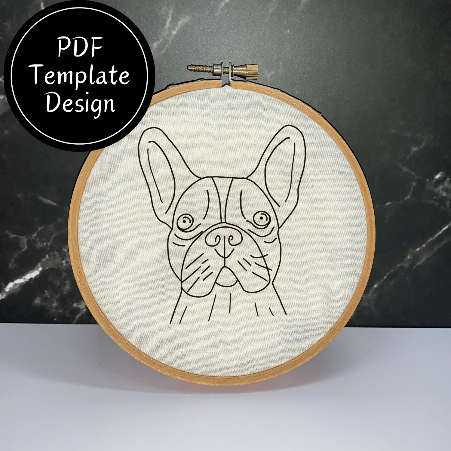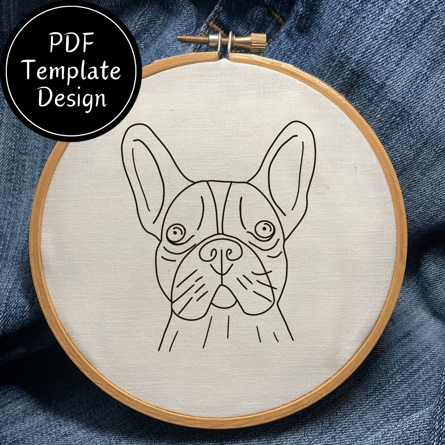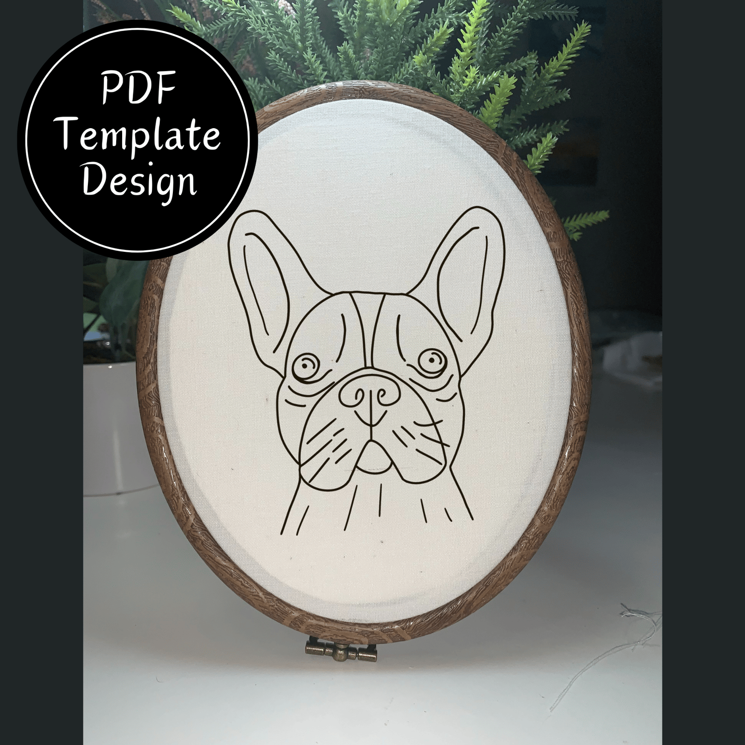 This Frenchie hand embroidery pattern is beginner-friendly, choose the stitches you like making it as easy or difficult as you wish. You can use this printable embroidery pattern to give as a gift, decorate your home, tote bags, etc.