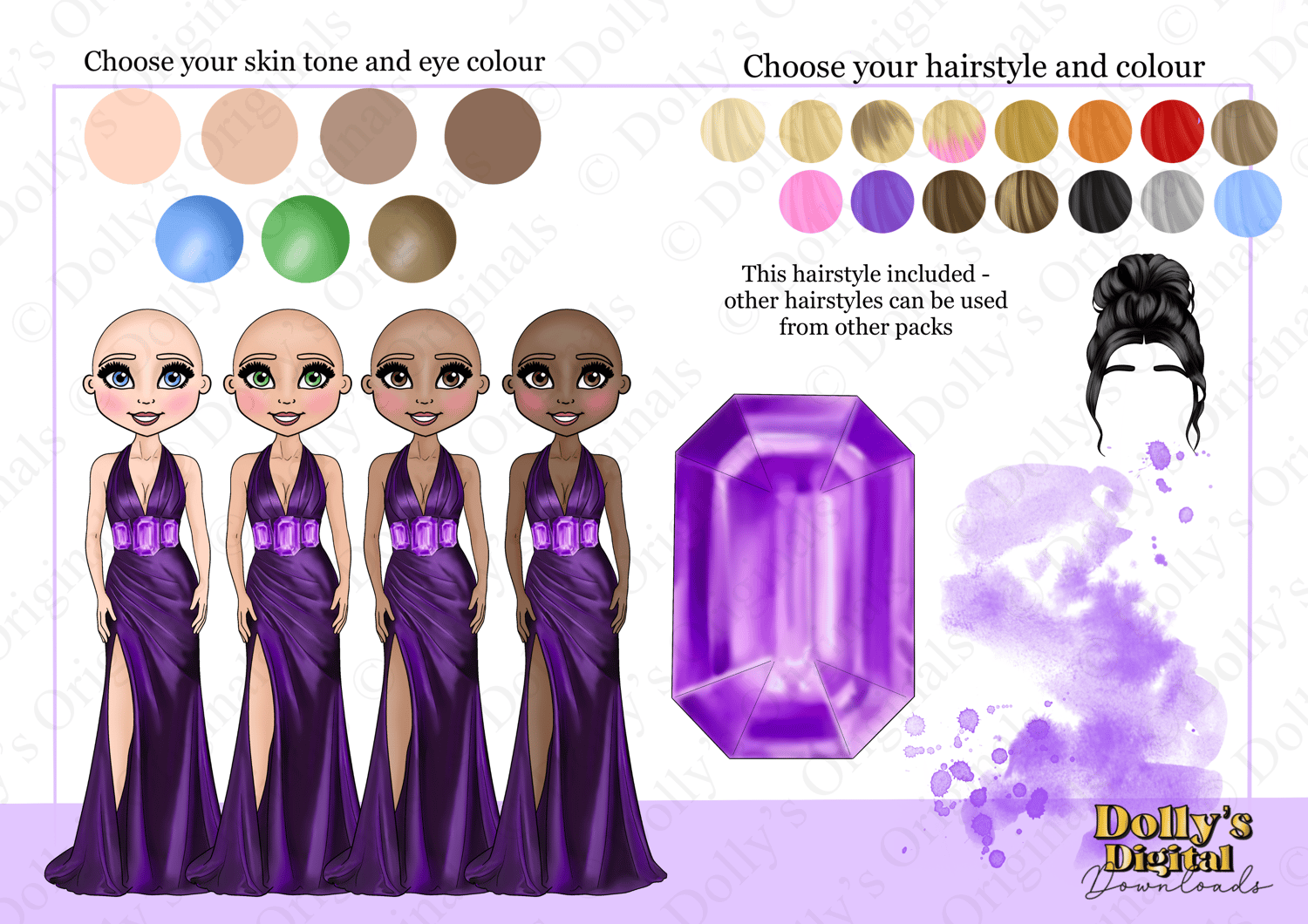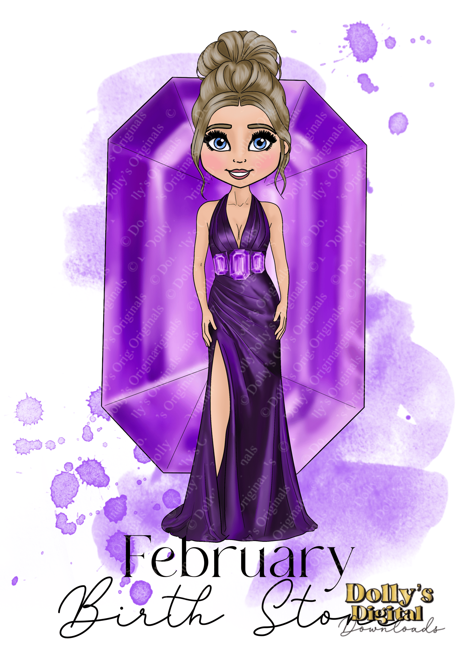 Instant digital download of our February Birth Stone Amethyst Dolly Character Bundle PNG (34 PNG’s)