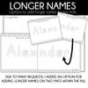 I highly recommend that you use the mats with the letters (3-5) to create these mats for longer names by linking two mats together due to the font. I have included up to 9 characters (second set of mats) but the names will be smaller on those mats due to the font (this is out of my hands) - I will update in the future if I find a better font to do this. So please do not purchase if you do not want to do this.