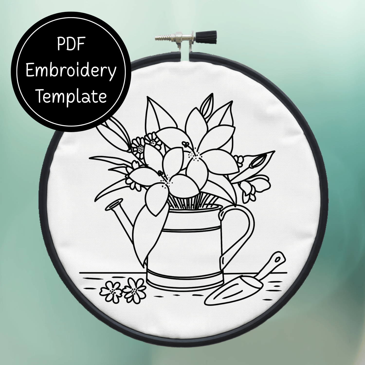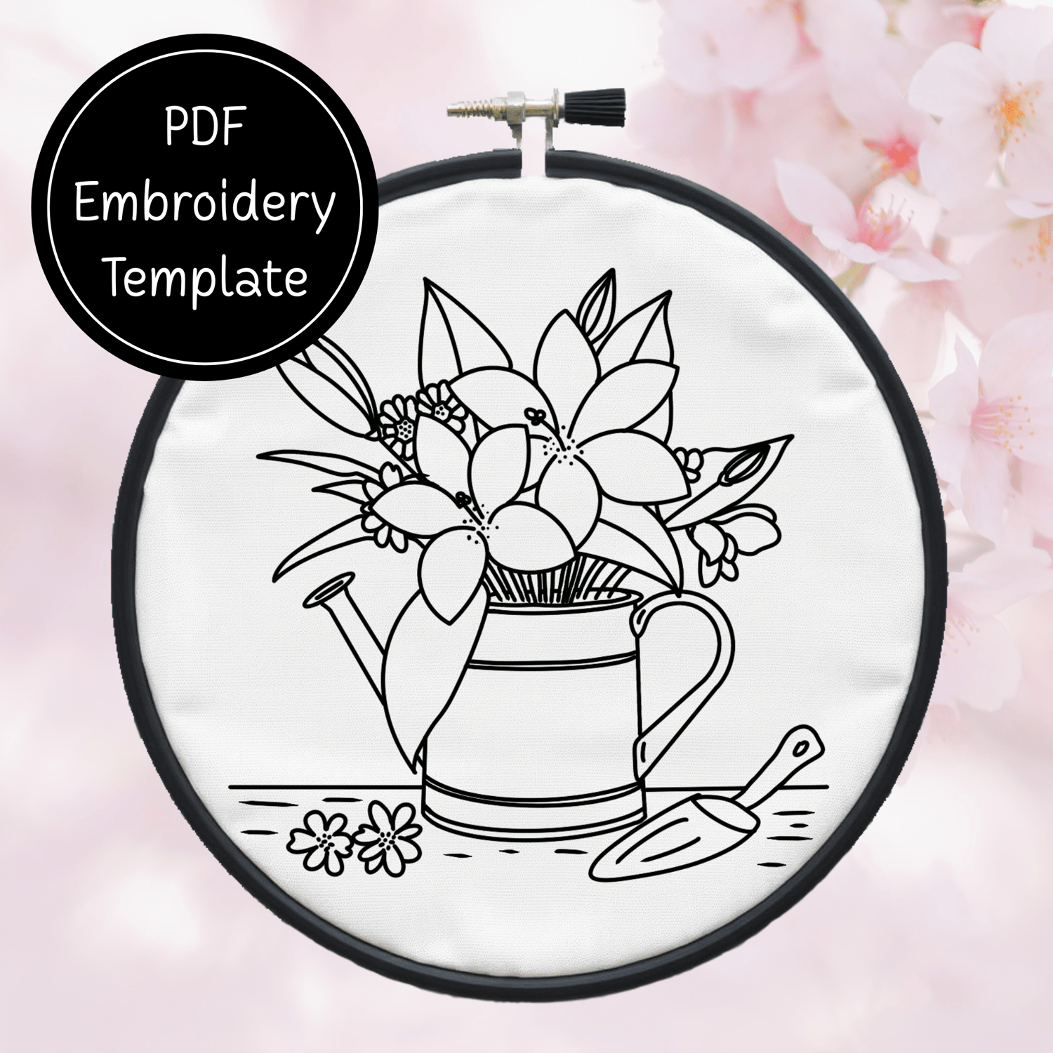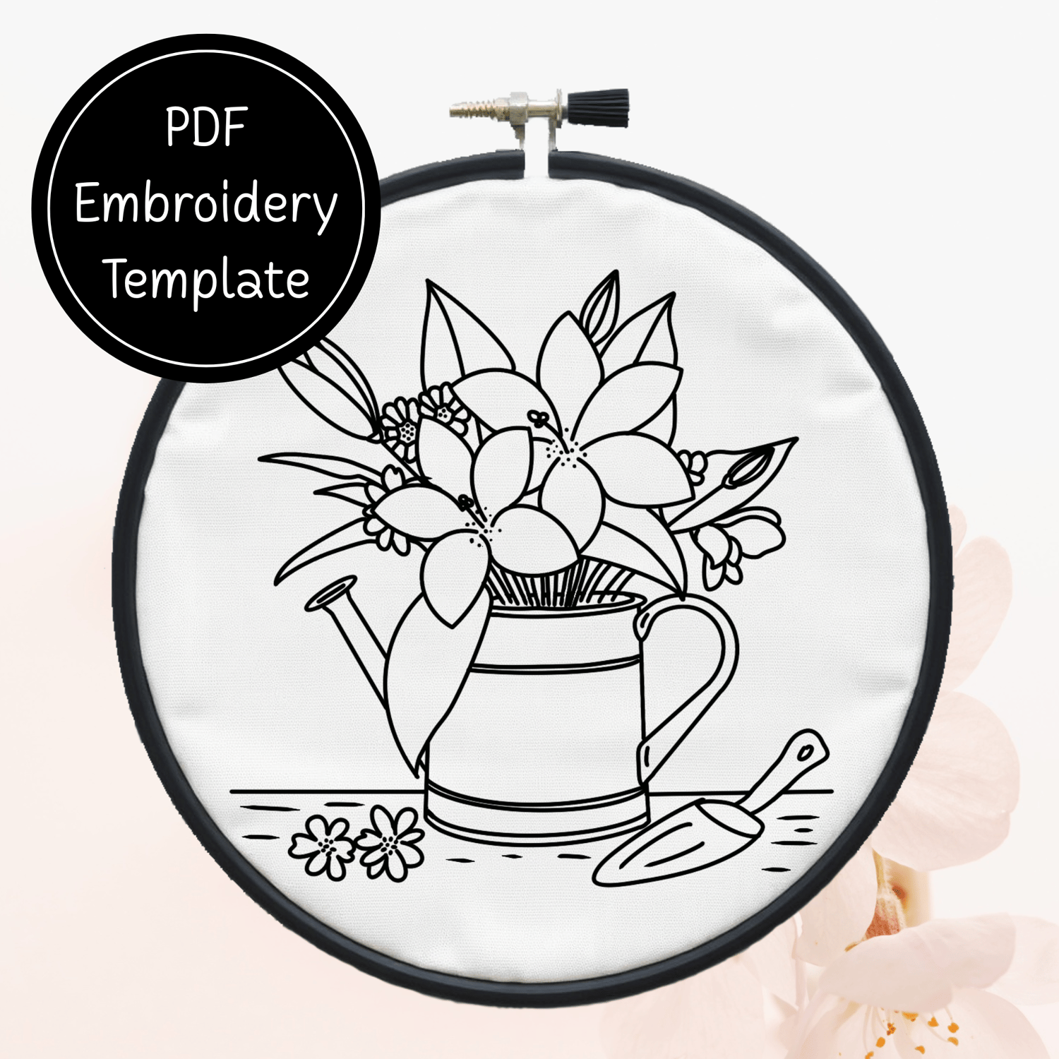 Garden Watering Can Hand Embroidery Pattern DIY Floral Design For Hand Stitching - Instant Download