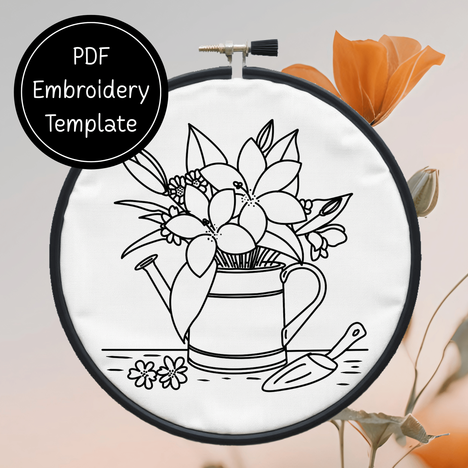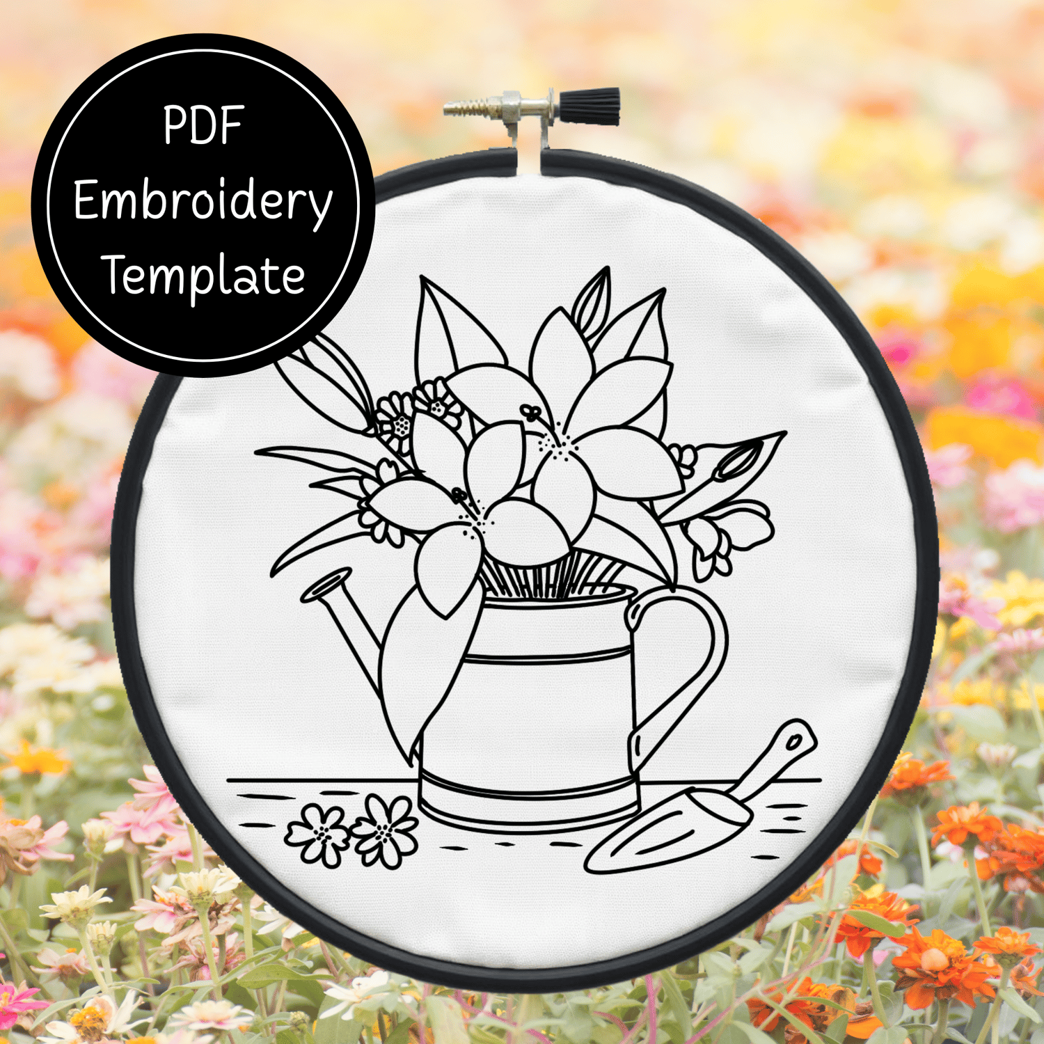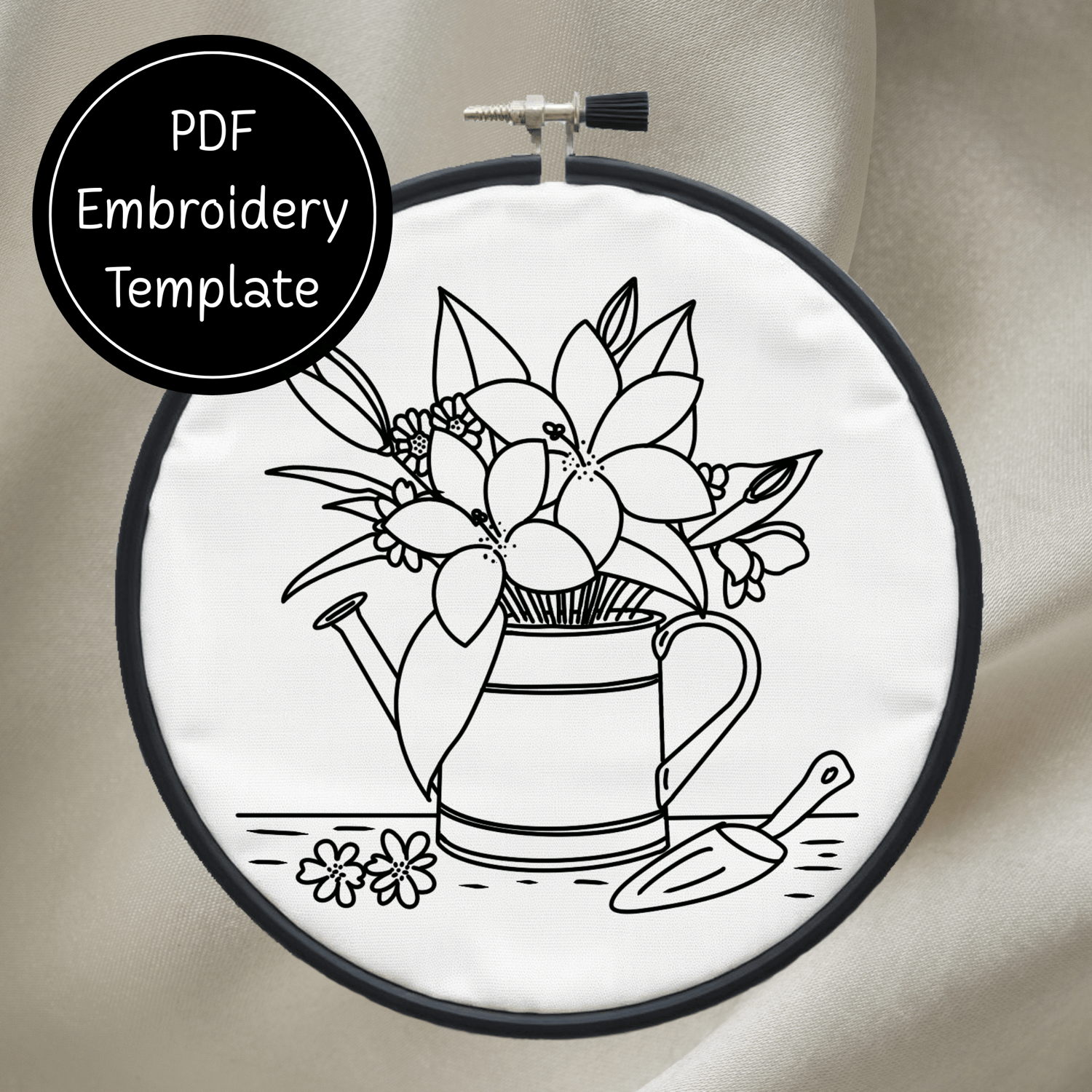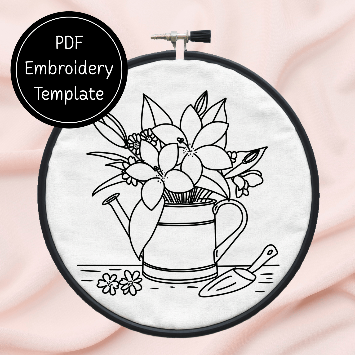 Garden Watering Can Hand Embroidery Pattern DIY Floral Design For Hand Stitching - Instant Download