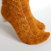Meaning Autumn in Scottish Gaelic, Foghar features a pattern of leaves falling from the cuff! The pattern is knit from the toe up with a gusset and heel flap, first with a single leaf motif then doubling the pattern up the leg. These socks are the perfect mix of relaxing knit and engaging pattern. With four widths and flexible length fitting, these are a great pattern for everyone.