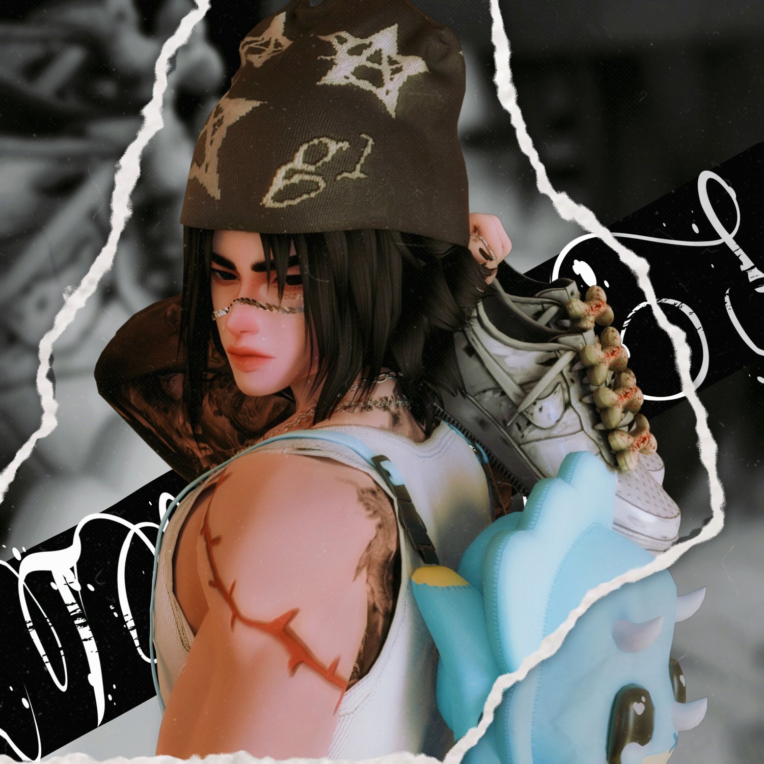 Color Swaps: Main Hair Swap/Skintone Slider/Tattoos/Pants Slider/Hats Slider/Shoe Slider/Top Slider/Hoodie Slider/R and L Eye Swap/
