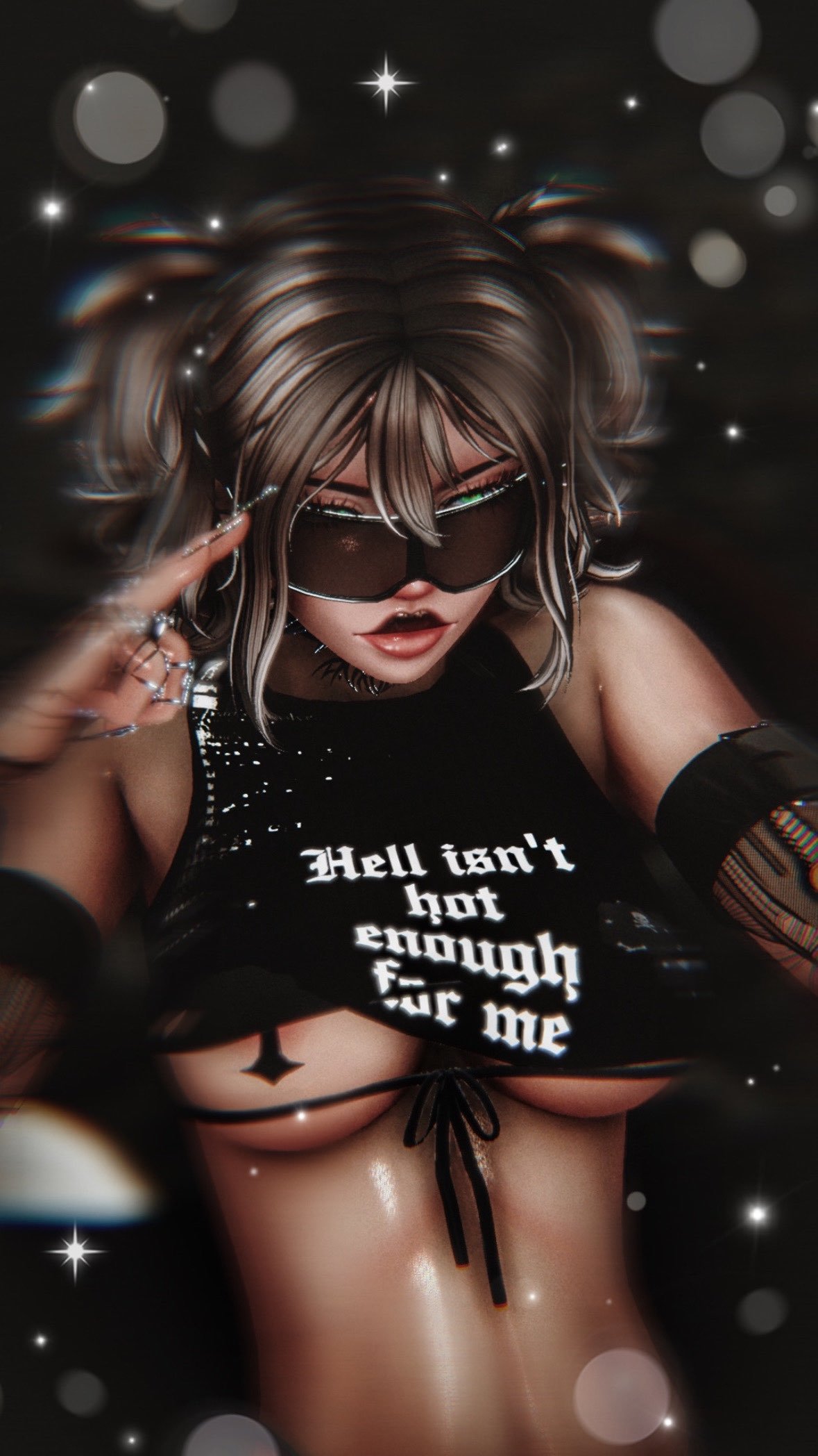 ACC: Bali Glasses/Braclettes/DinoBag/HeartChain(NOT FOR REUSE)/Sleeves/Left Ruby Earings/Rings/StarRings/Crossbelt/Belt/Choker/Right Earings/Cross Pasties/Harness