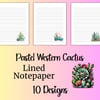 Pastel Western Cactus Stationery | Printable Cactus Notepaper | Western Cactus Writing Paper | Cactus Penpal Paper