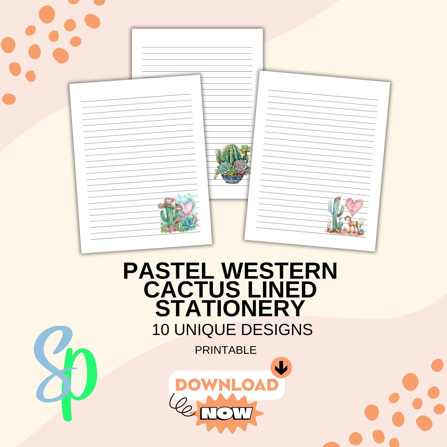 So what are you waiting for? Grab your spurs and lasso in this Printable Pastel Western Cactus Notepaper today and let your creativity bloom! Yeehaw! 🌵💌 You'll recieve 10 unique sheets of Cactus Lined Penpal Paper.