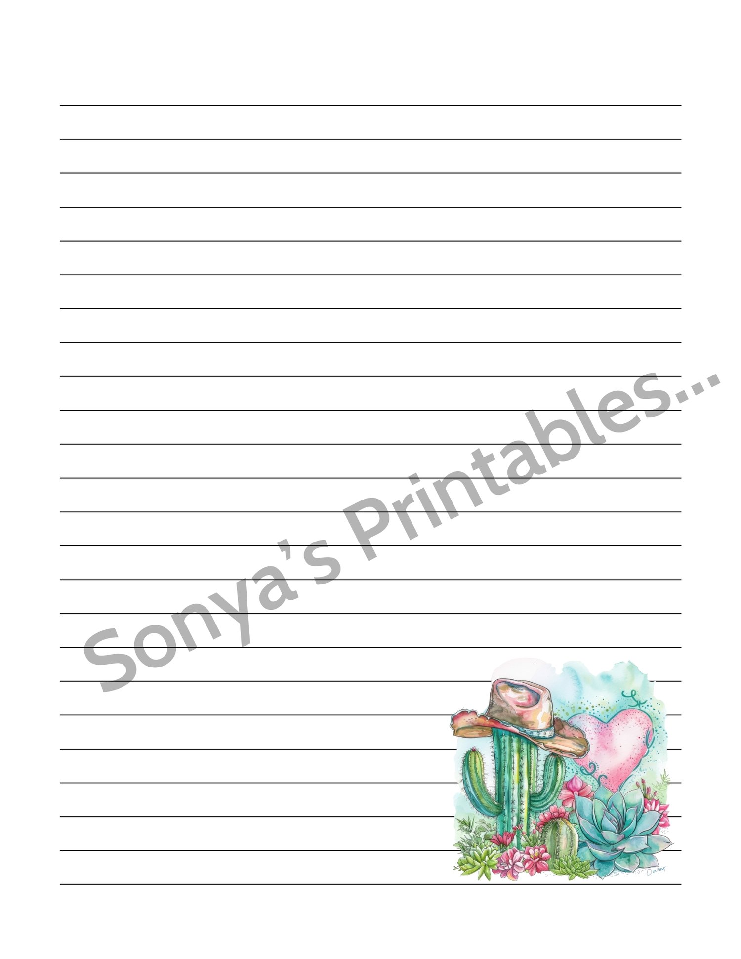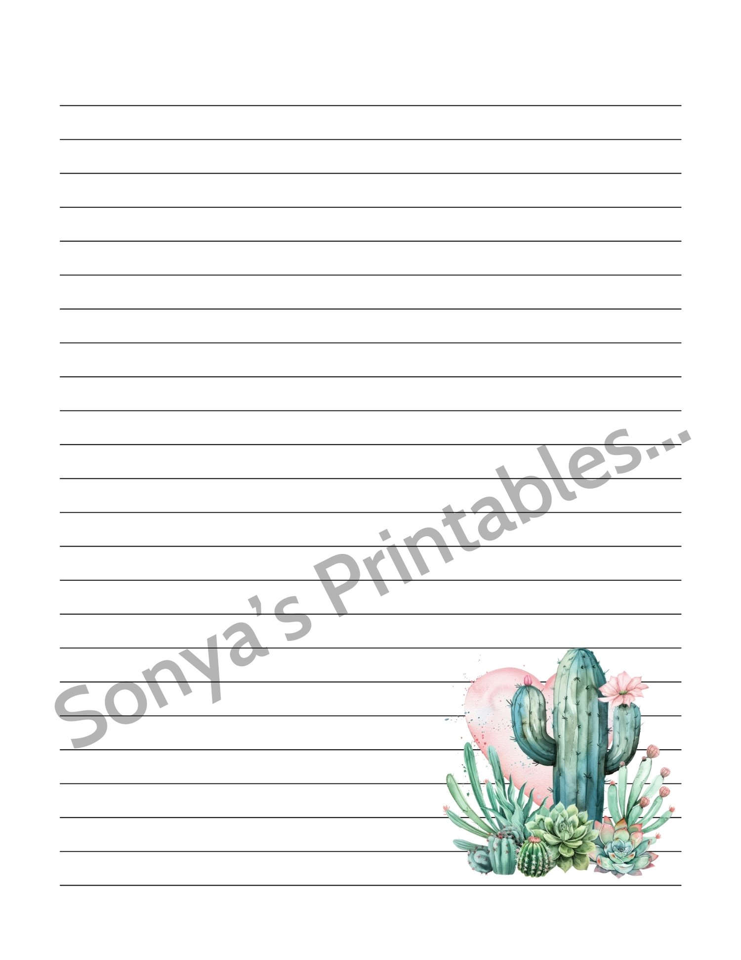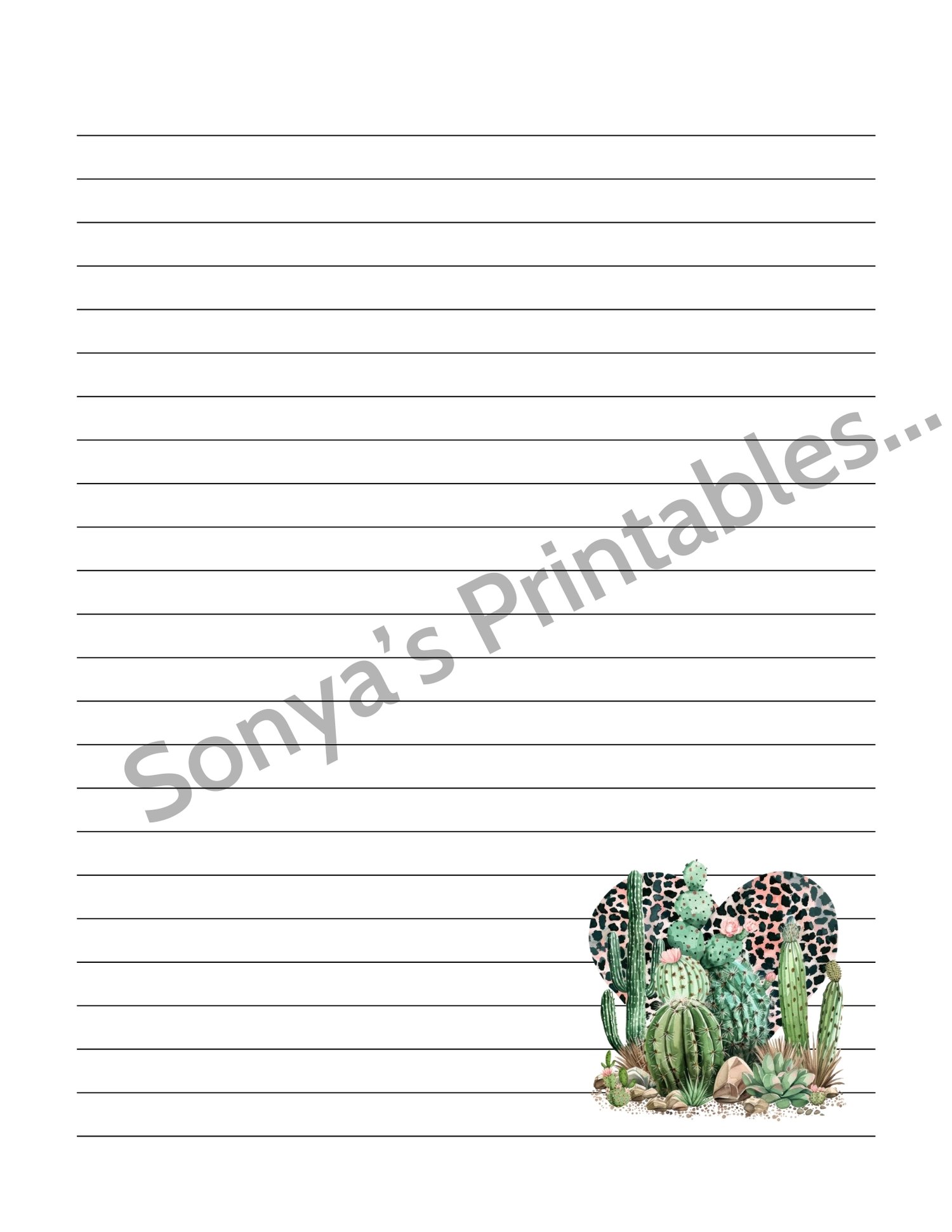 You'll be able to instantly download these to your device after your payment is received. This Printable Western Cactus Lined Writing Paper will print great on regular typing paper (8.5 x11 inches) You'll be able to print and reprint as many times as you like (just be sure to SAVE your download file).
