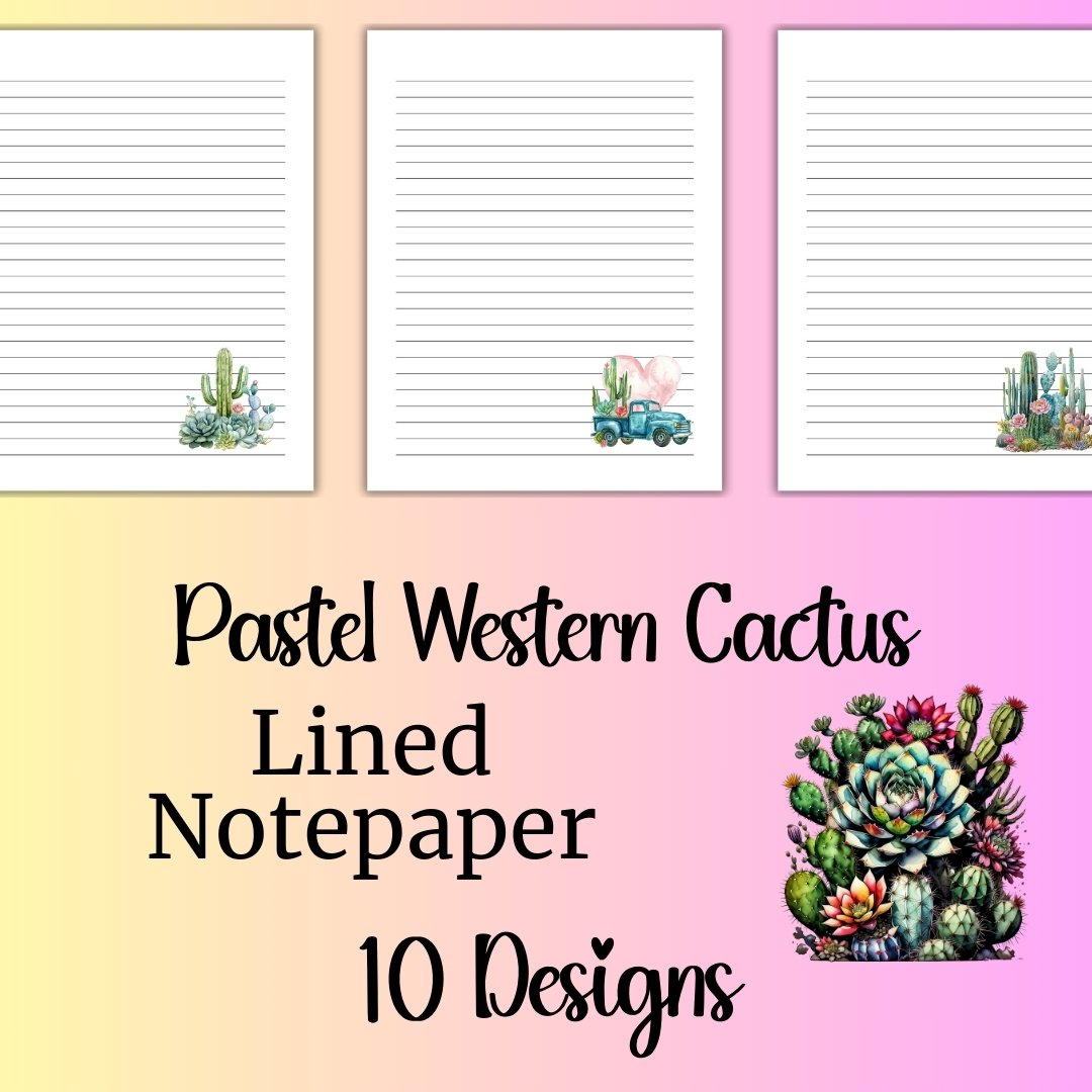 This stationery can be used as stationery or notepaper and is ideal for jotting down notes, sending a handwritten letter, or even just doodling cacti in your spare time. With 10 unique designs to choose from, each page features pastel western cactus graphics that are sure to bring a smile to your face. Plus, each page is lined for your convenience, making it easy to keep your thoughts organized.
