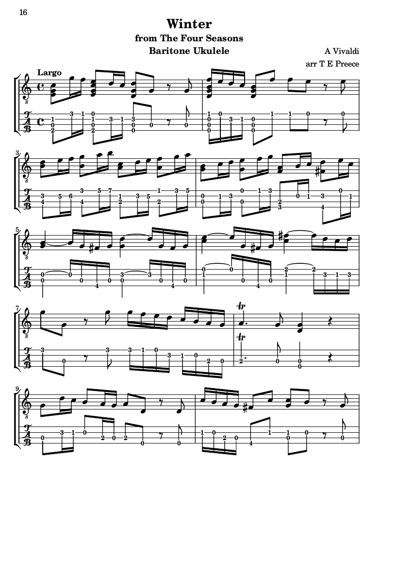 Themes from Vivaldi's The Four Seasons arranged for ukulele and baritone ukulele duet