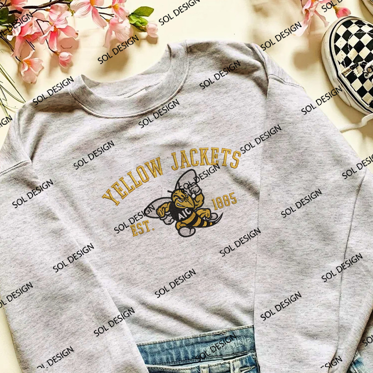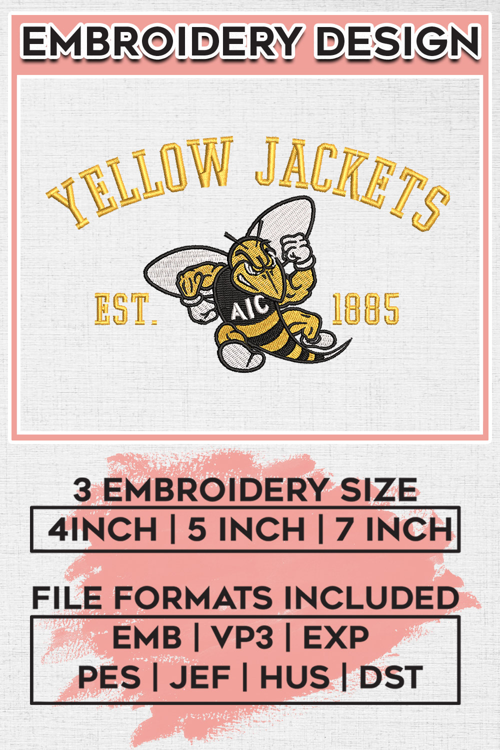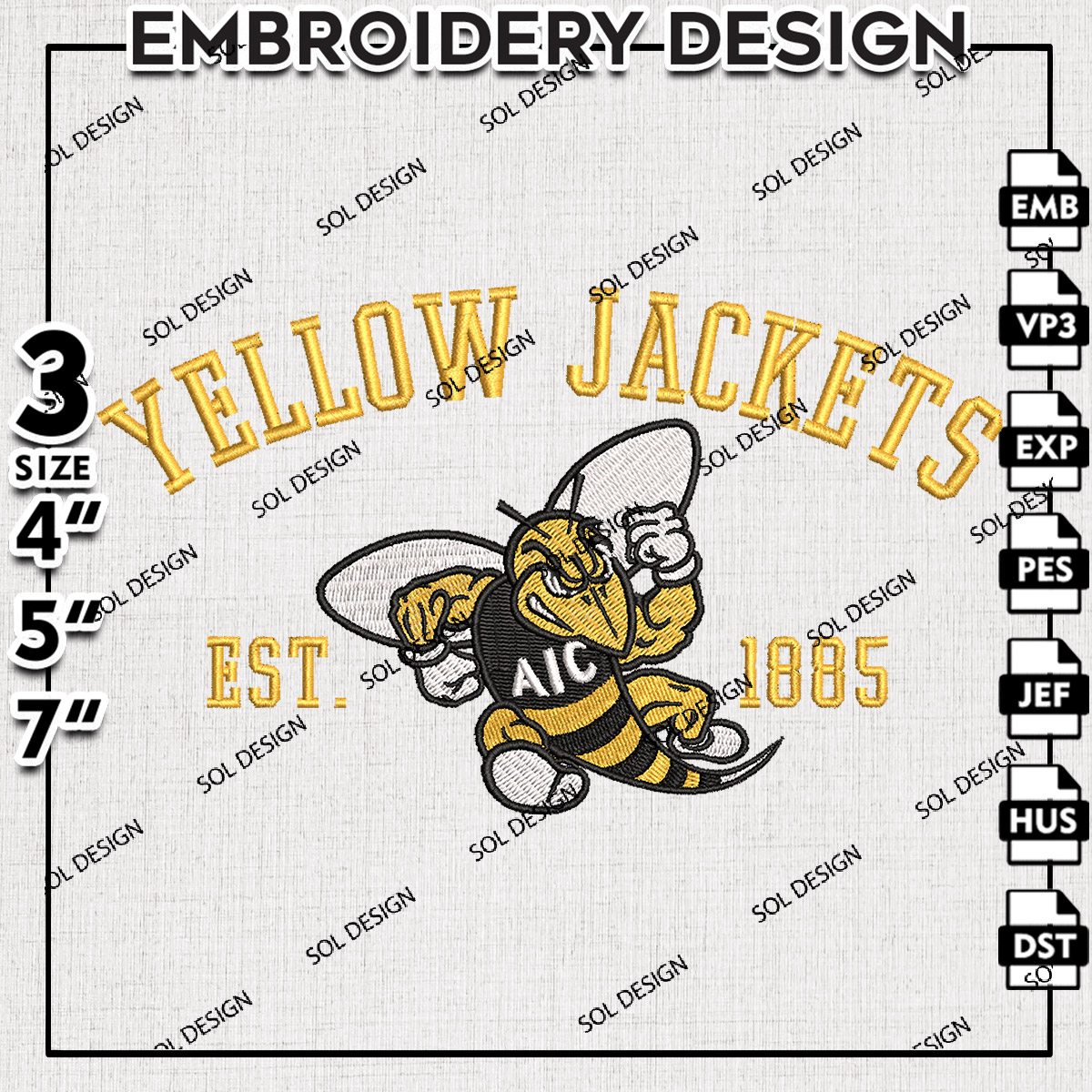 Nikee Yellow Jackets Team Est Logo Embroidery Designs, NCAA AIC Yellow Jackets Machine Embroidery Files, NCAA Logo embroidery designs, Ncaa Yellow Jackets Logo, Digital Download
