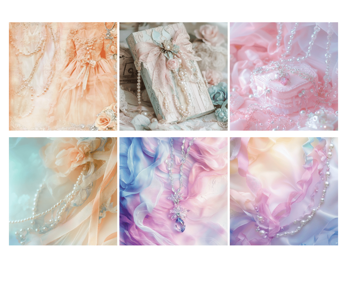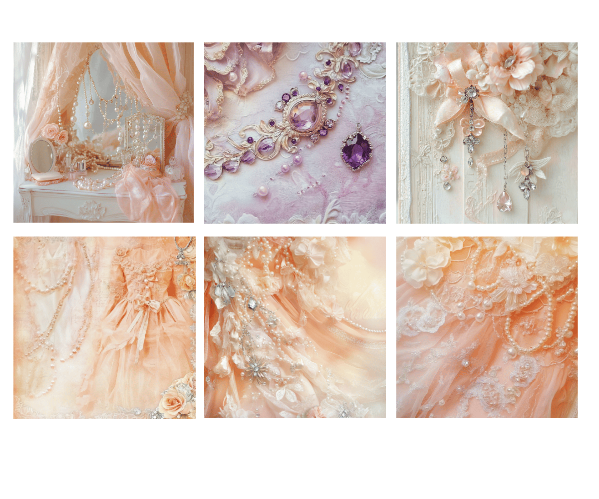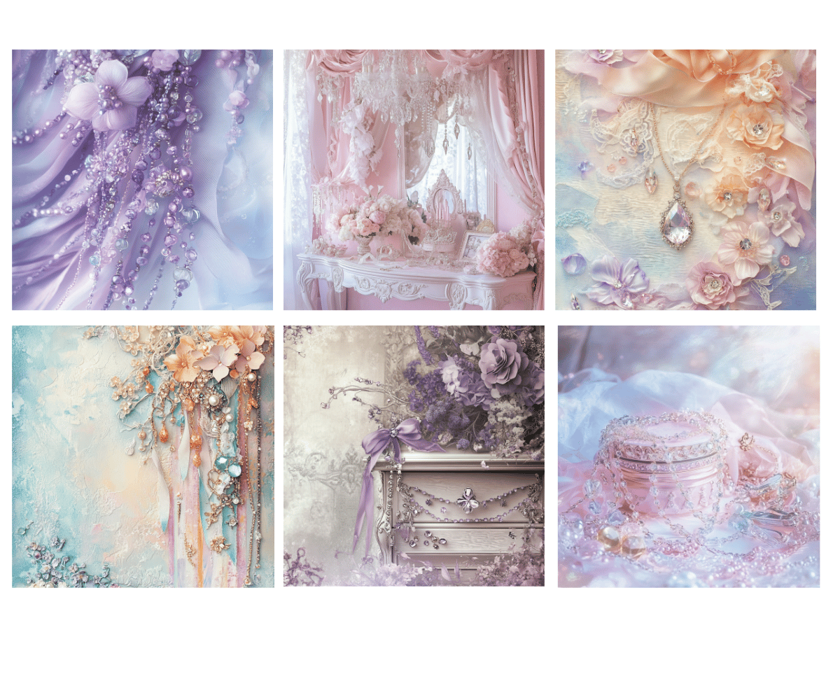 Elevate your crafting projects with our gorgeous Pastel Crystal and Pearls with Jewelry Digital Papers. Perfect for instant download and sublimation design. Backgrounds include elegantly styled elements suitable for crafting projects in gorgeous tones. Sweet pastels featuring jewelry, ribbons and bows, crystal necklaces, pearl necklaces and jewelry and makeup tables. Ideal for digital art, printable clipart, and crafting, this set is a must-have for creating charming arts and crafts designs. In fact, cut them out and place them on your planners to make for an extra special gift for an organizer.