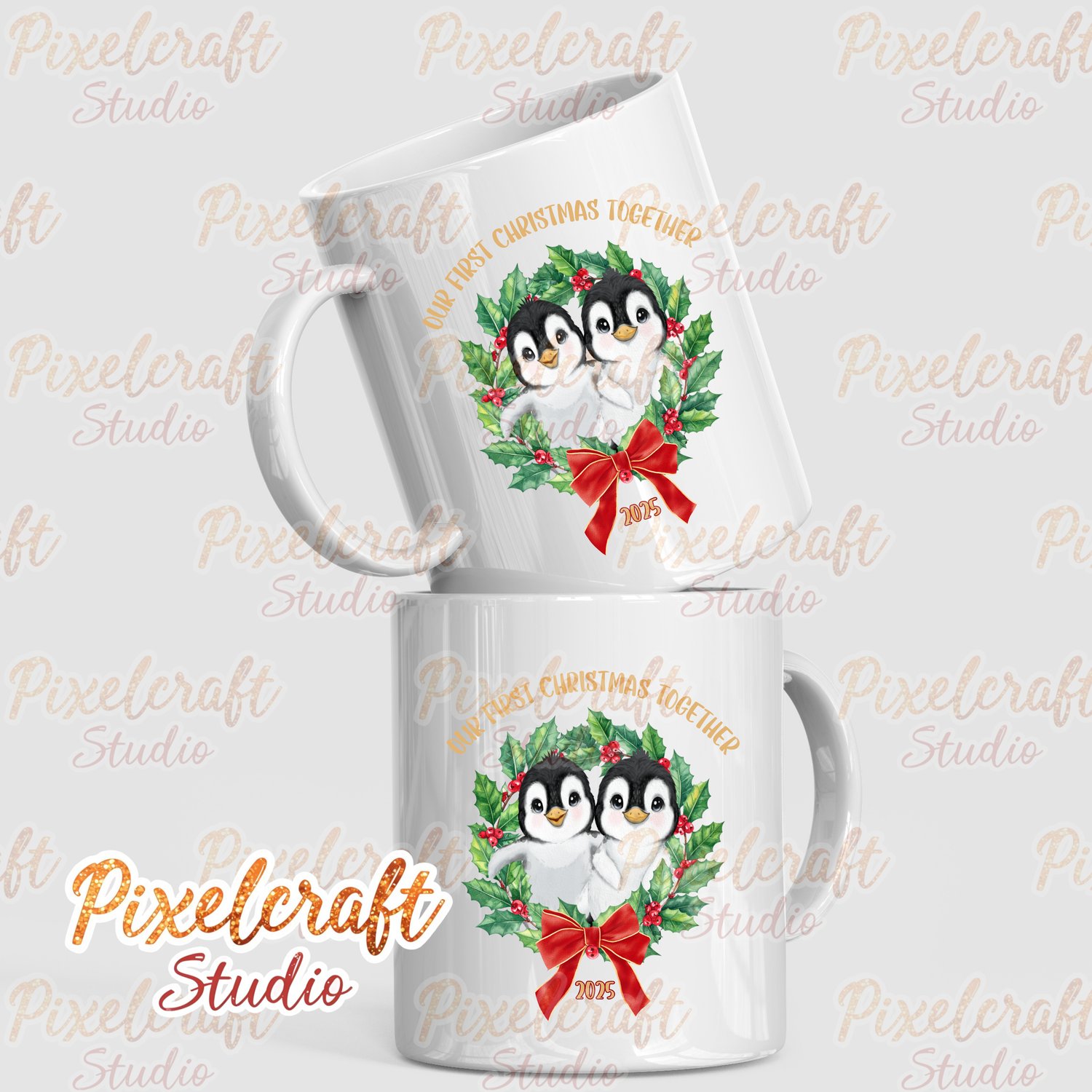 OUR FIRST CHRISTMAS PENGUINS SUBLIMATION DESIGN - PNG - INSTANT DIGITAL DOWNLOAD