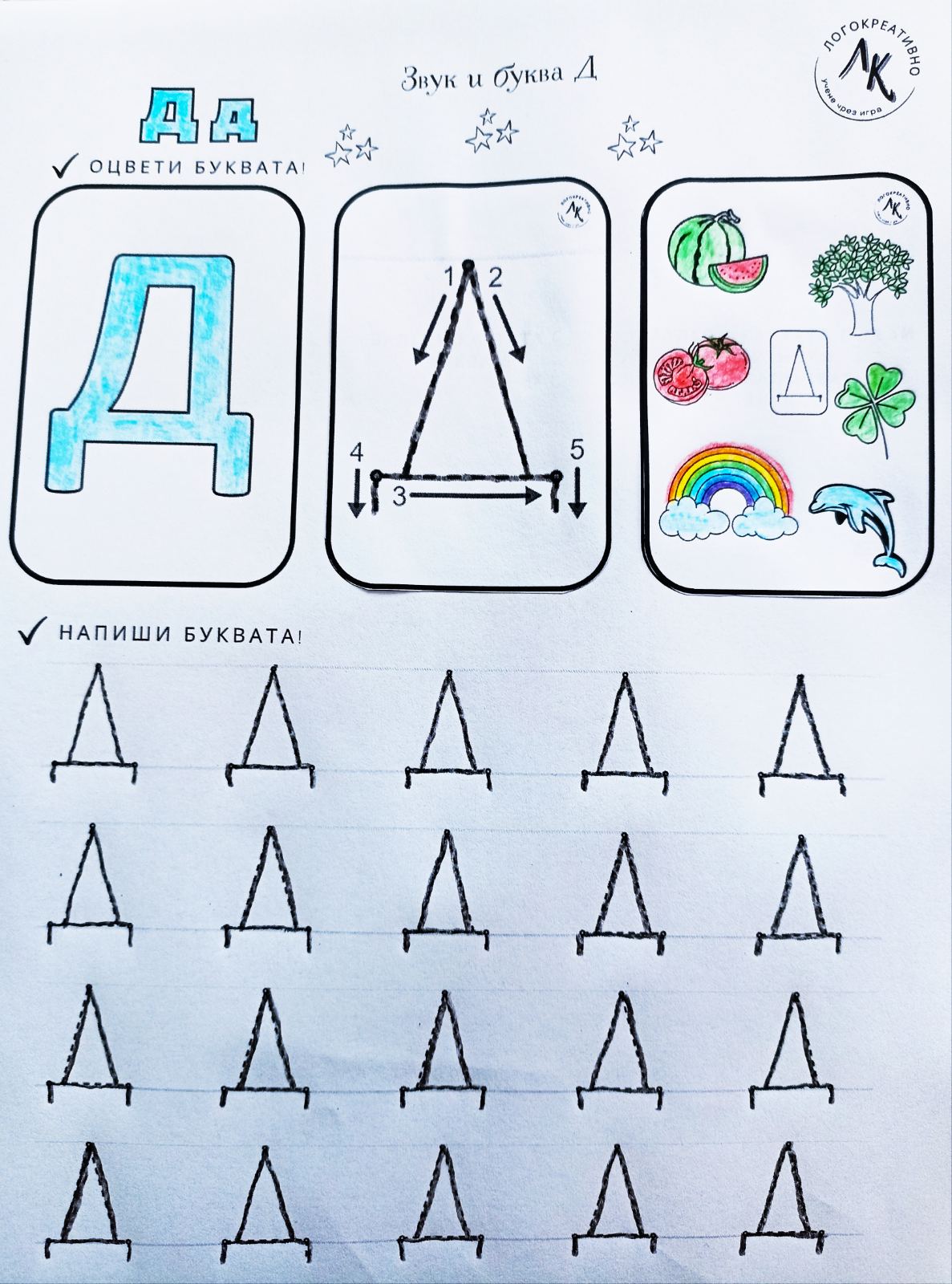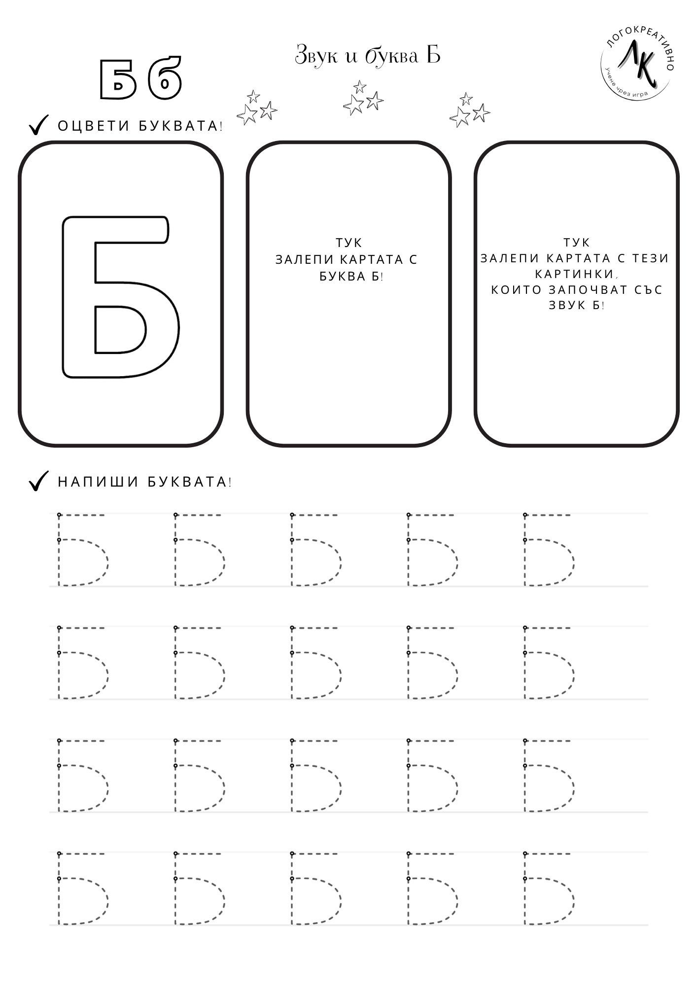 🎉 Перфектен ресурс за малки изследователи на буквите! Съчетава писане, оцветяване, изрязване и залепване – всичко, което обичат децата! 🖍️✂️📎