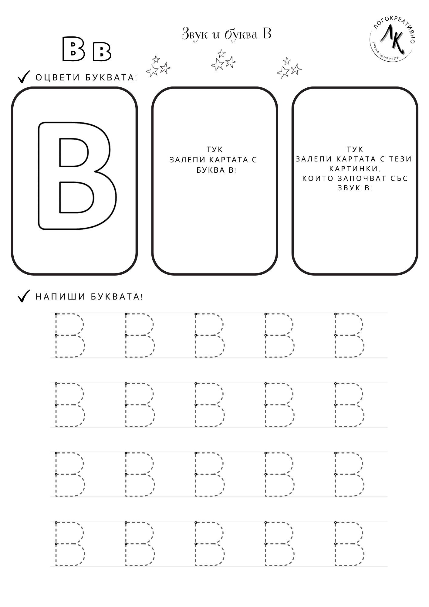 📎 Изписване на буквата върху картата по пунктир