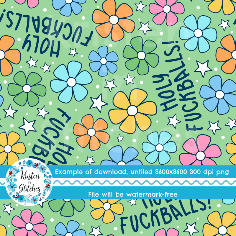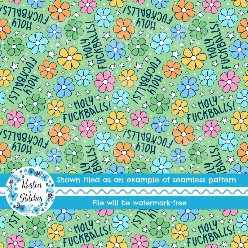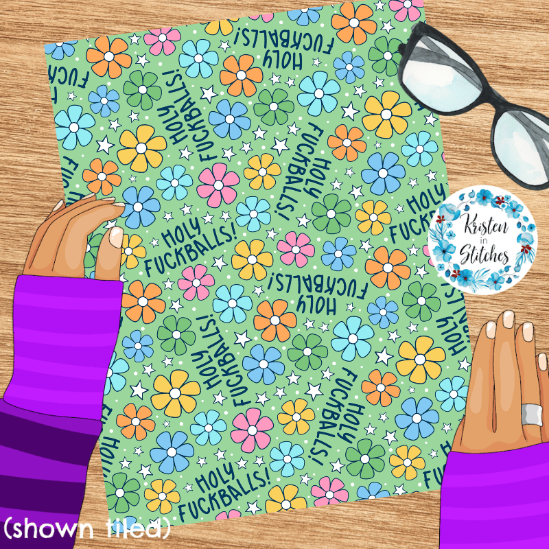 Holy Fuckballs Sweary Floral Seamless Pattern, Pretty Profanities